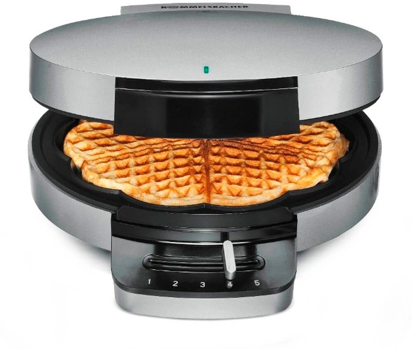 Выпечка 5 венских вафель в форме сердечка. Плавная регулировка степени подрумянивания. Гибкий шарнир для регулировки высоты выпечки