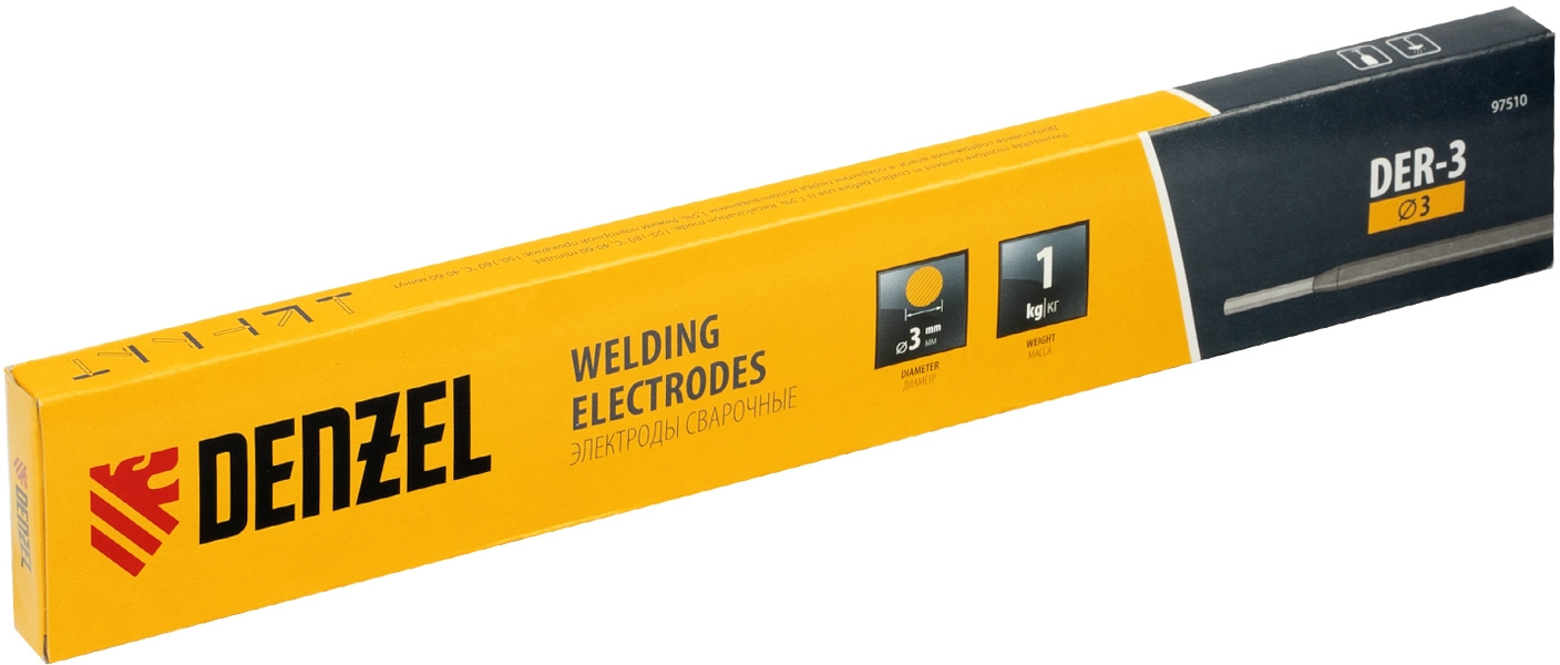 Электроды Denzel DER-3 97510 диаметром 3 мм, с рутиловым покрытием, 1 кг в упаковке, предназначены для ручной дуговой сварки деталей из углеродистых сталей при максимальном токе 140 А. Подходят для заготовок толщиной 3-5 мм. Электроды пригодятся для сварочных работ в гараже, мастерской или на даче.
