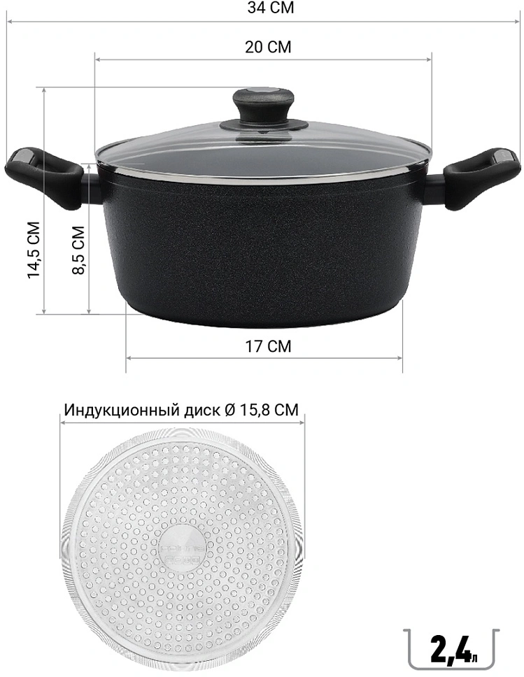 2.4л. d=20см (с крышкой) черный (017168)