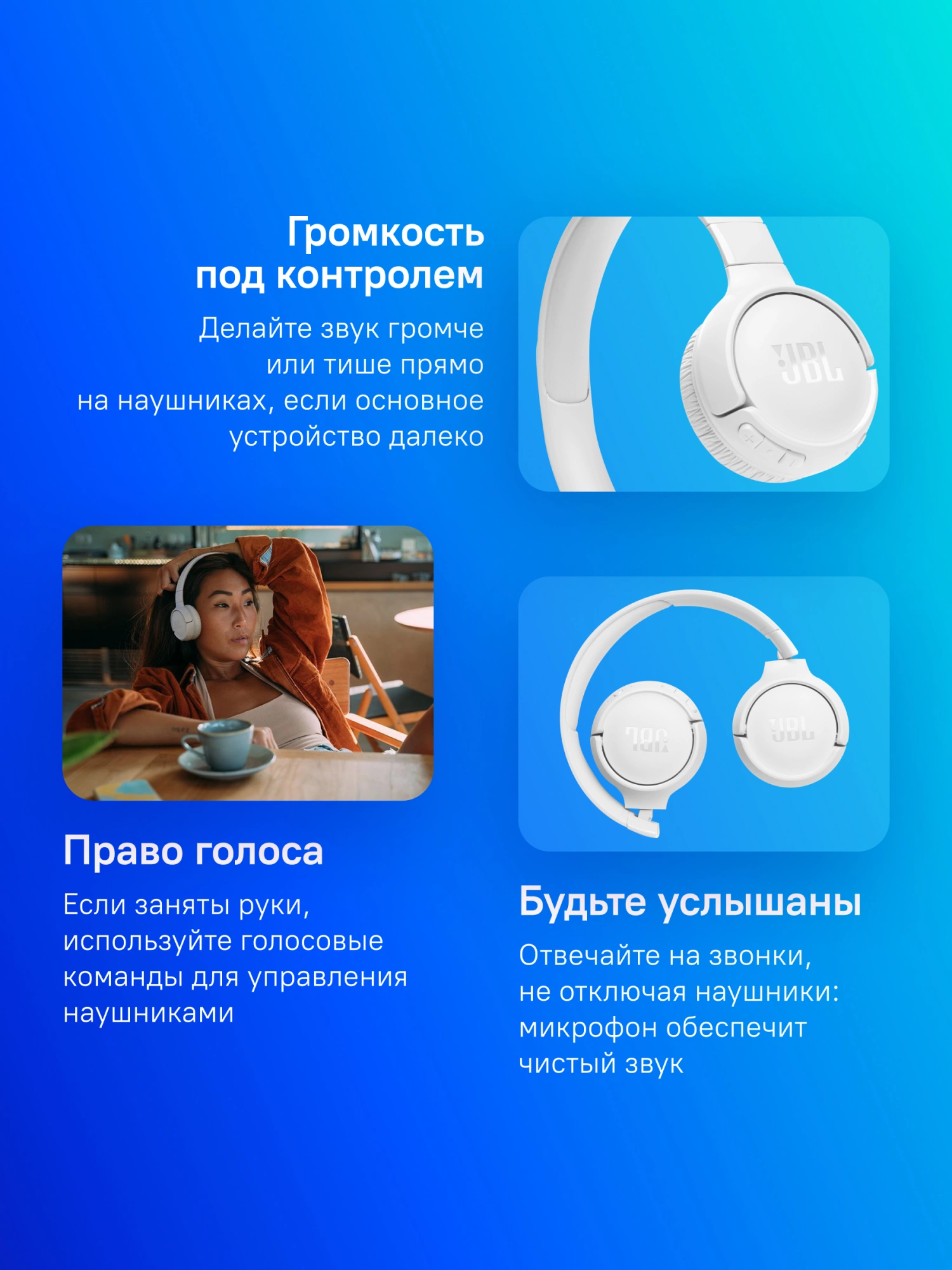 гарнитура JBL Tune 520BT, кабель зарядки, документация