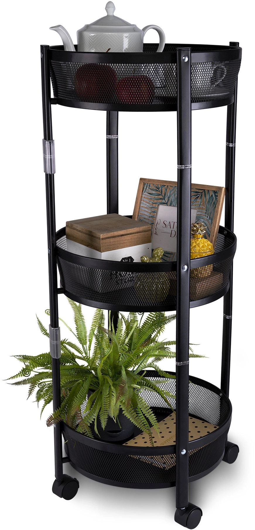 Функциональность и надежность: идеальное решение для функциональной организации пространства в любом помещении. Эта этажерка идеально подходит как для хранения овощей, фруктов, вин и соков, так и для размещения кремов, шампуней, мыла и других мелочей. Трехъярусная этажерка Domfy сочетает в себе свойства, которые сделают вашу жизнь удобнее, а Ваш интерьер более функциональным и элегантным.