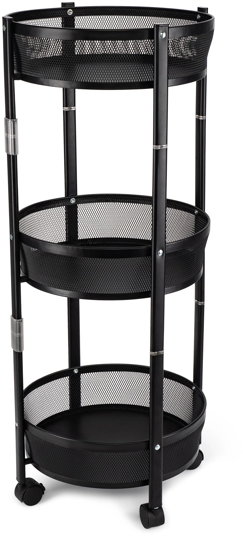 Полки в виде плетеных корзин для циркуляции воздуха: Каждая полка этой этажерки выполнена в виде элегантной плетеной корзины. Это не только придает ей стильный вид, но и обеспечивает эффективную циркуляцию воздуха, что особенно важно для хранения овощей и фруктов.