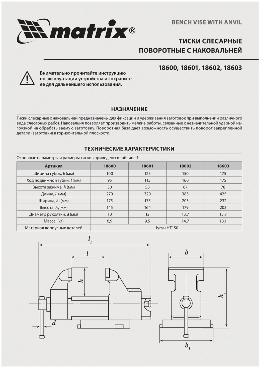 Тиски Matrix 18601