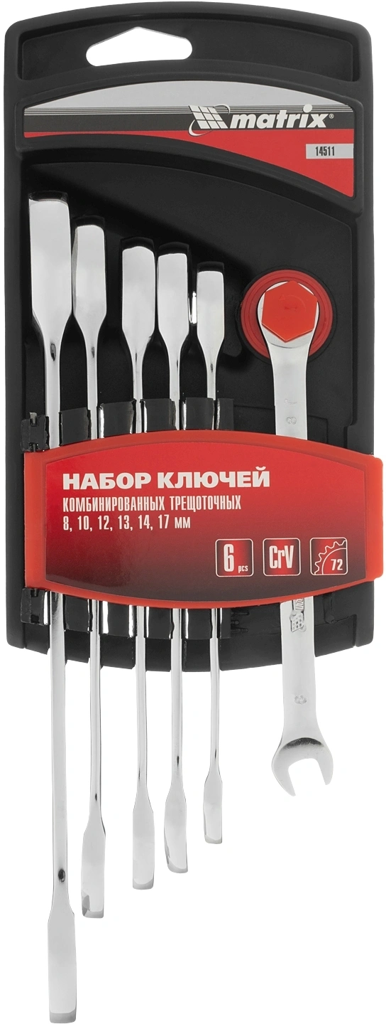 Набор ключей комбинированных 8,10, 12, 13, 14, 17 мм., трещеточных 6 шт.