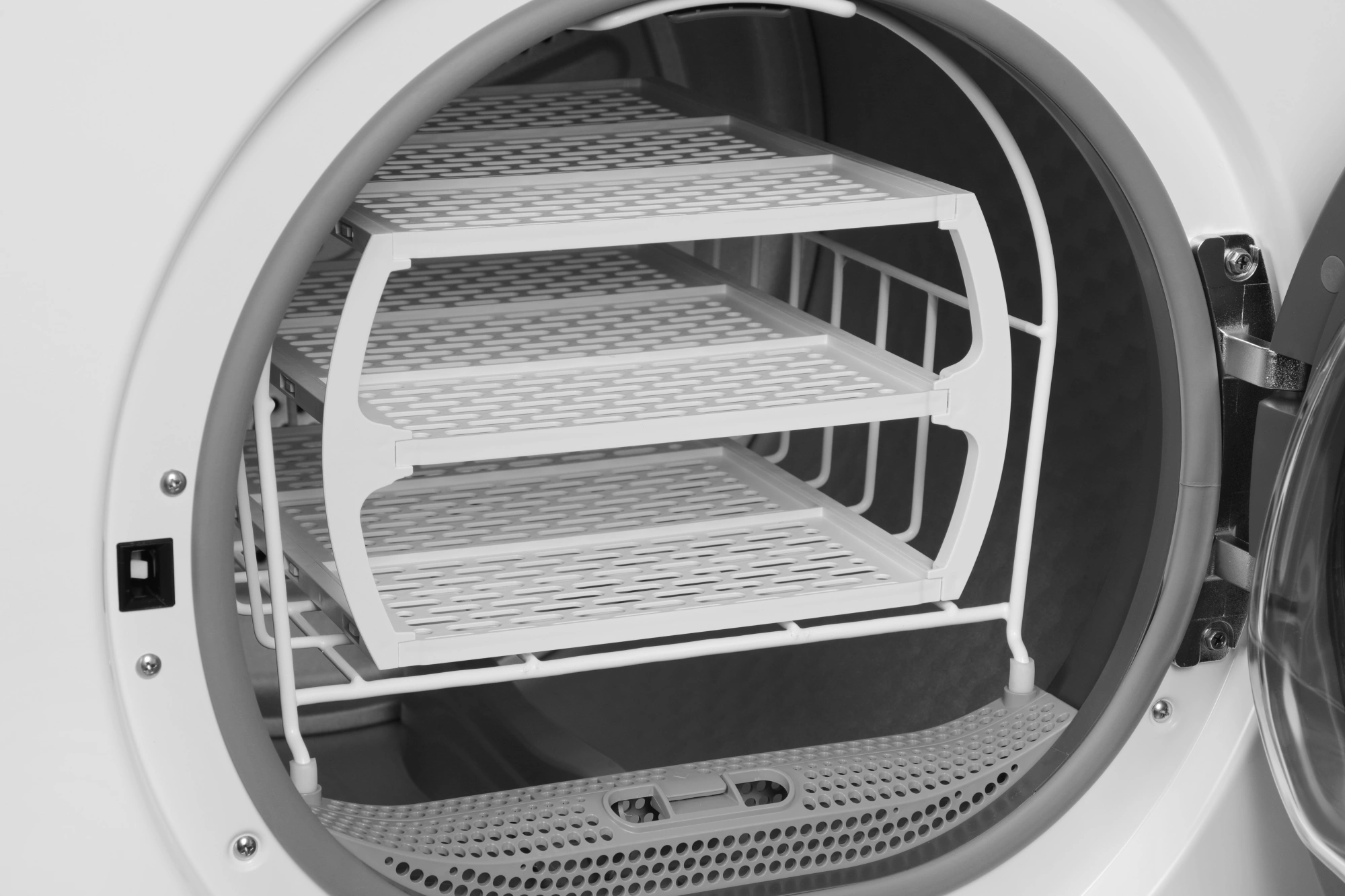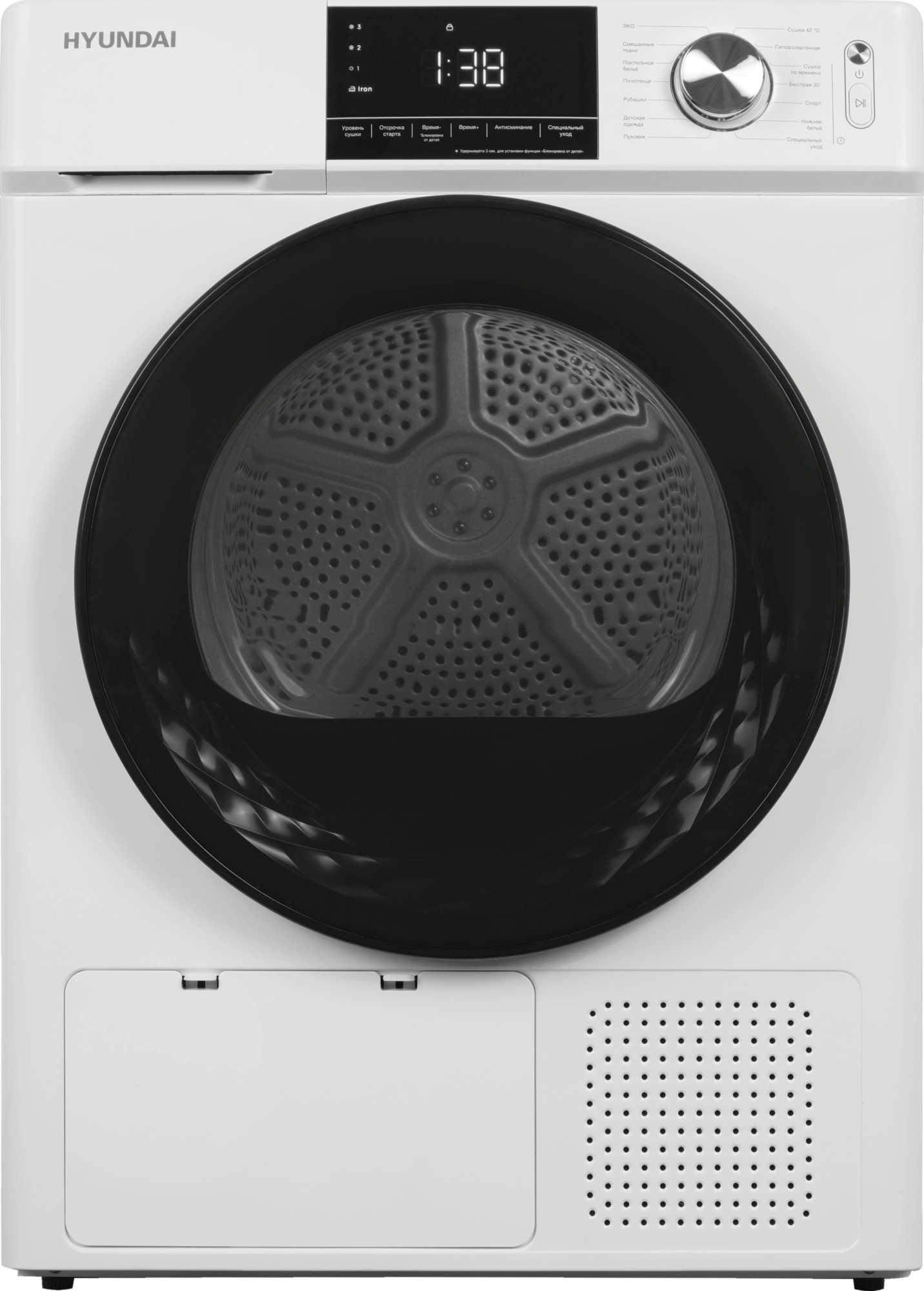 Диаметр загрузочного люка 52 см и угол открытия люка 135° обеспечивают простой доступ при загрузке и выгрузке белья. Просто положите свою одежду внутрь и дайте сушильной машине HYUNDAI DFE9401 позаботиться об остальном.