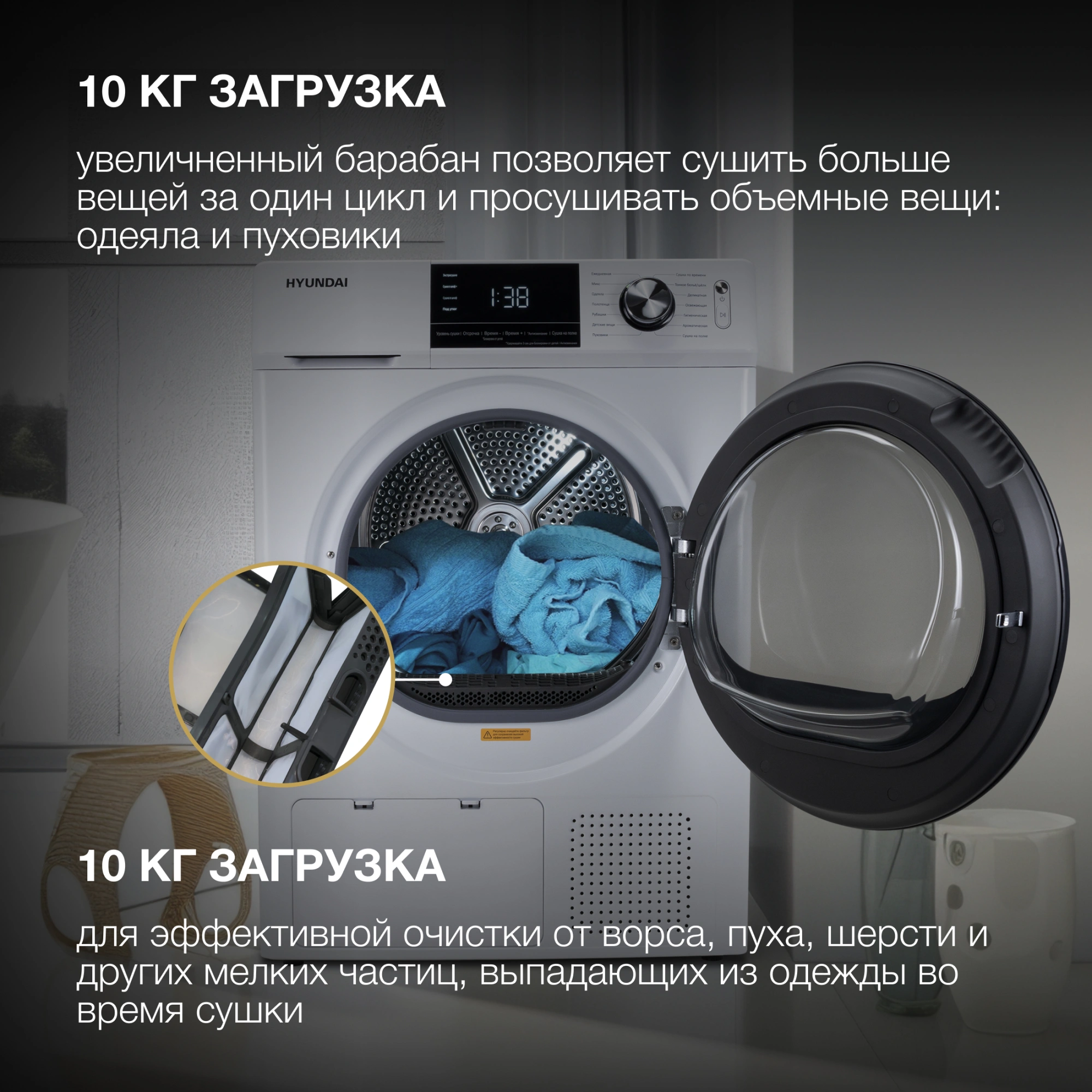 Сушильная машина HYUNDAI DFE9401: Идеальное Решение для мягкости и комфорта