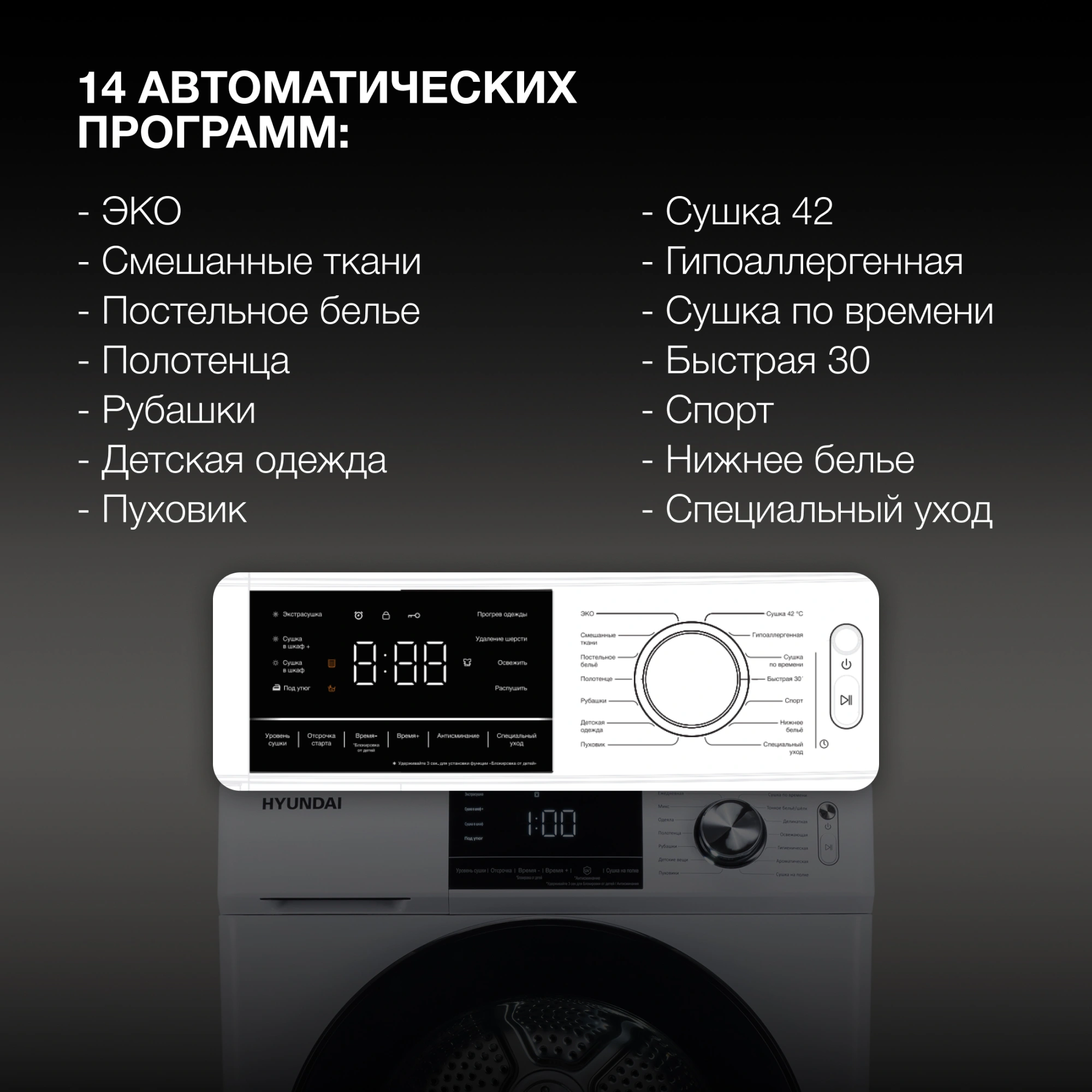 Сушильная машина — HYUNDAI DFE9401 - это инновационное решение для быстрой и нежной сушки вашей одежды. Она сочетает в себе эффективность, комфорт и заботу о природе. Теперь ваша одежда всегда будет свежей, мягкой и готовой к носке!