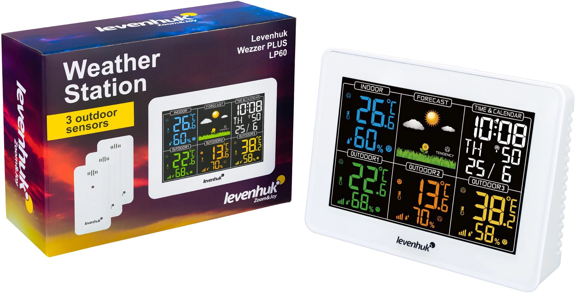 Стильная метеостанция с тремя беспроводными датчиками, которая подойдет для квартиры, офиса, загородного дома. С этим прибором вы будете в курсе изменений температуры и влажности в четырех разных зонах. Специальные индикаторы на экране демонстрируют тенденции к повышению или понижению значений.