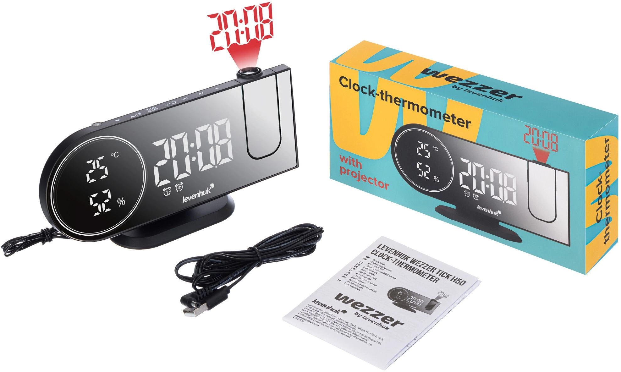 Levenhuk Wezzer Tick H50 – это стильные часы в запоминающемся дизайне, которые дополнены множеством интересных функций. Здесь есть проектор, который позволяет выводить время на стену или потолок. Также прибор измеряет температуру и влажность воздуха в комнате и может поднять утром громким сигналом.