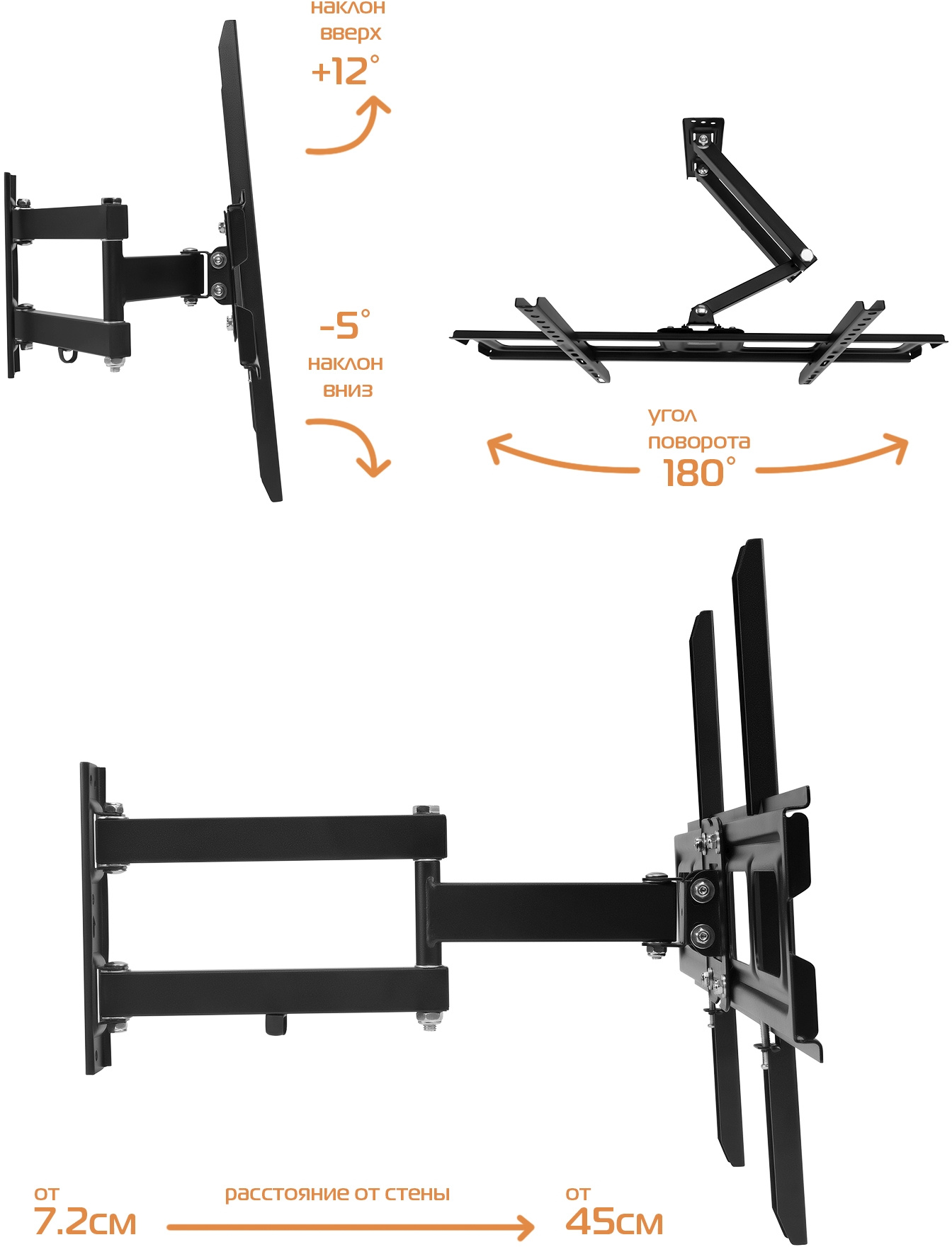 черный 32"-70" макс.35кг настенный поворотно-выдви...