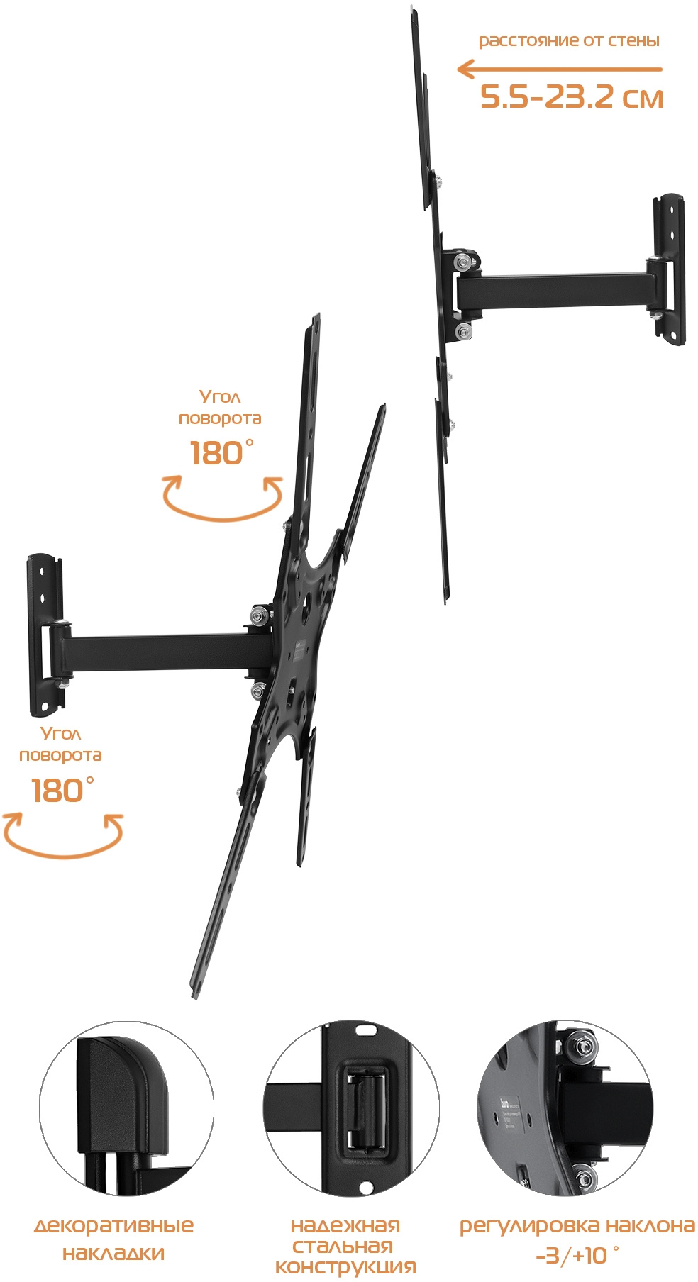 черный 13"-60" макс.25кг настенный поворот и накло...