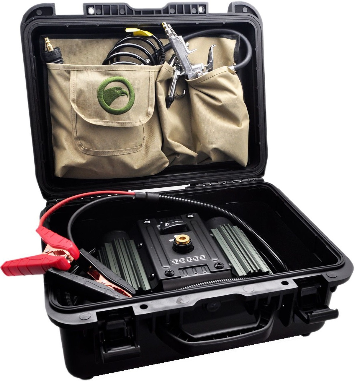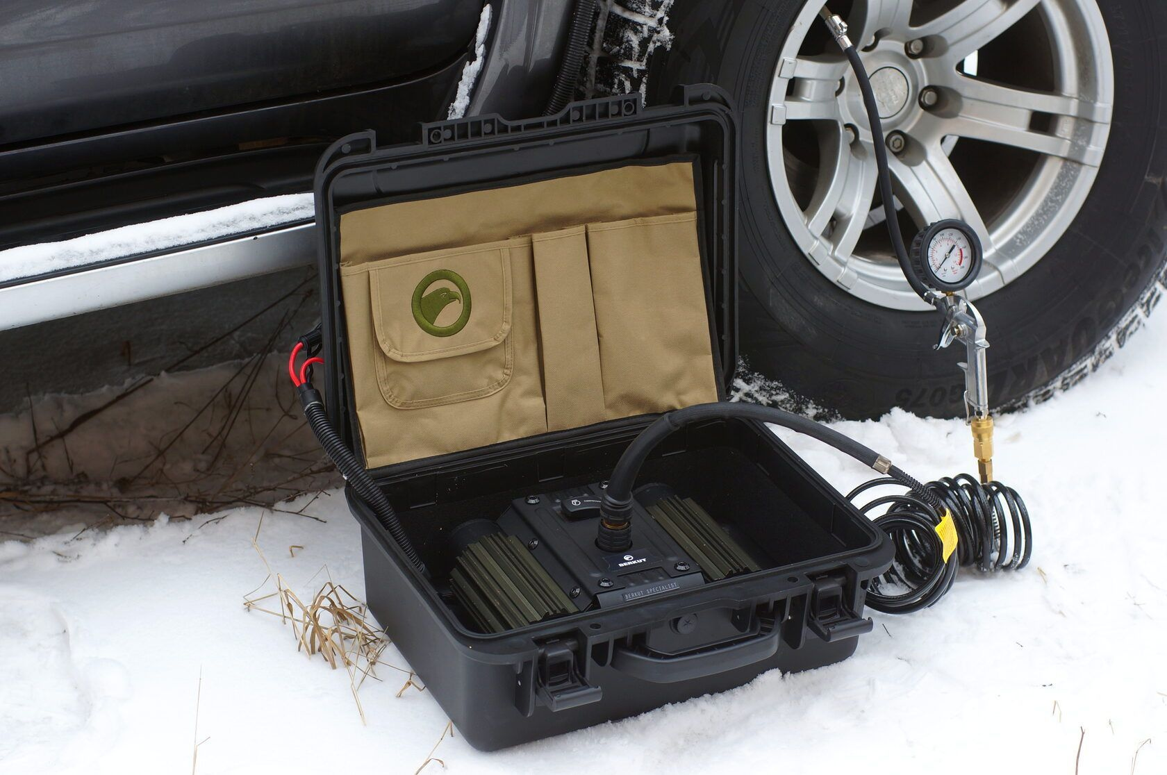 2 компрессора. Система может быть использована для накачивания шин автомобилей, надувных лодок, рафтов, сапбордов и т.п.