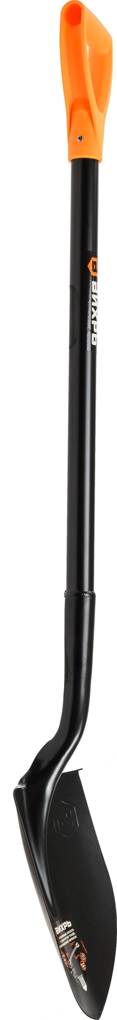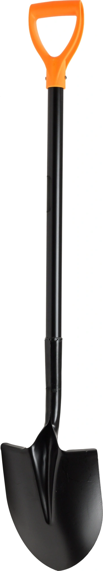 Надёжный и прочный стальной черенок круглого сечения. Сварное соединение между лезвием и черенком обеспечивает надёжность и долговечность. Рессорно-пружинная сталь придаёт лопате дополнительную жёсткость и гарантирует лёгкое проникновение в почву. Эргономичная D-образная ручка удобно лежит в руке.
