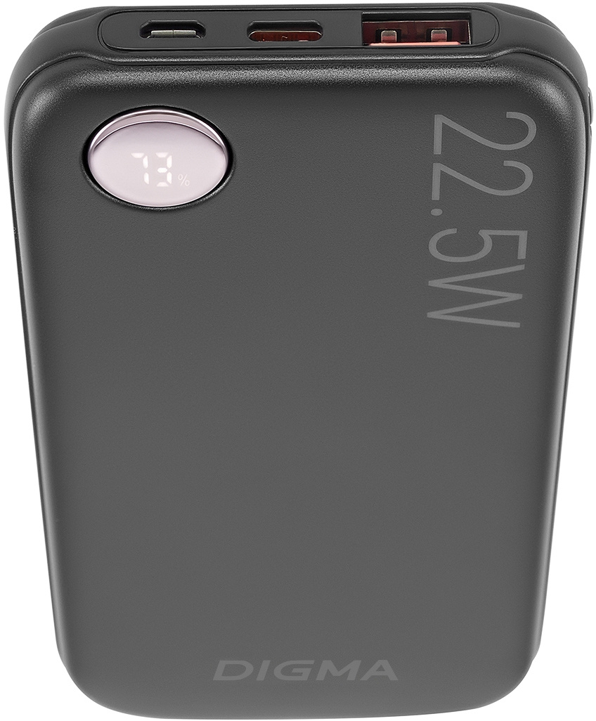 Портативный пауэрбанк Digma DGPF10B емкостью 10 000 мАч поможет не зависеть от розетки, всегда оставаться на связи и пользоваться любимыми гаджетами, когда они вам нужны. Внешнего аккумулятора хватит на два полных заряда смартфона. Пополняйте запас энергии у ноутбука, планшета, смарт-часов, беспроводных наушников, плеера в любом месте и в необходимое вам время. Аксессуар оборудован портами USB-A и USB-C. Это позволит заряжать одновременно два устройства.