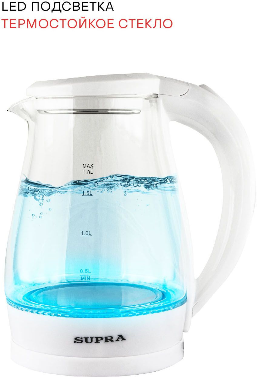 1.8л. 1500Вт белый/прозрачный корпус: стекло/пласт...