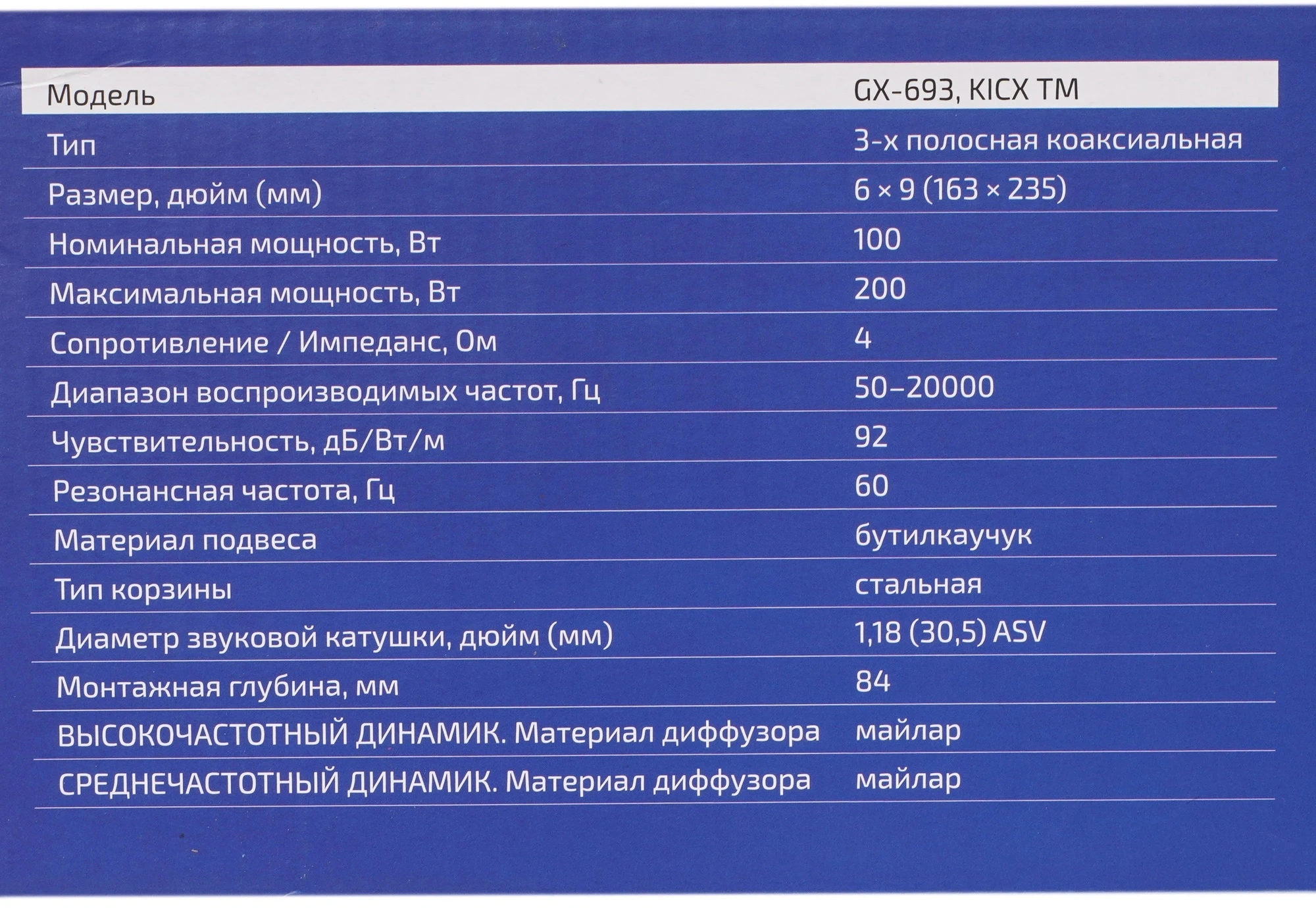 Колонки автомобильные Kicx GX-693