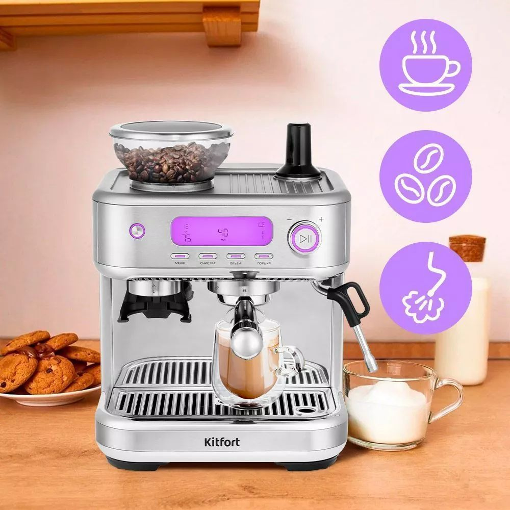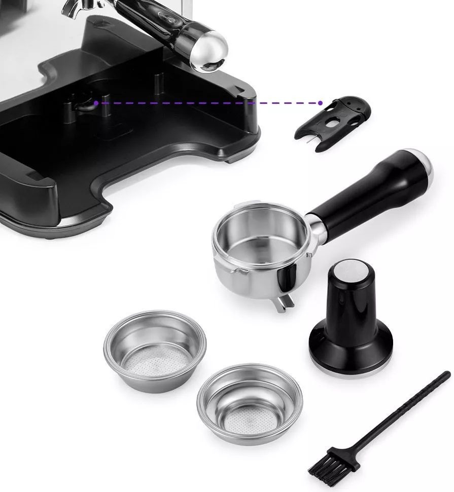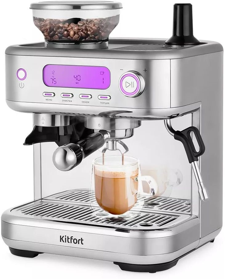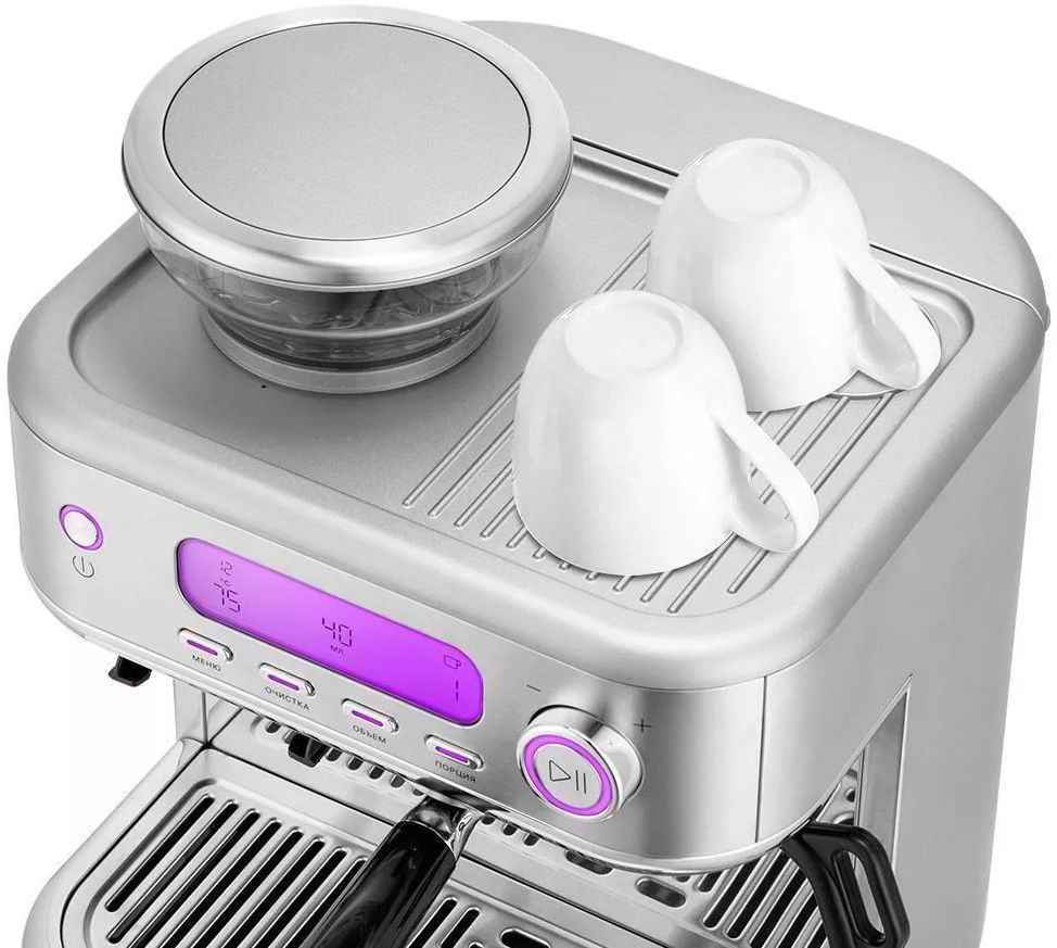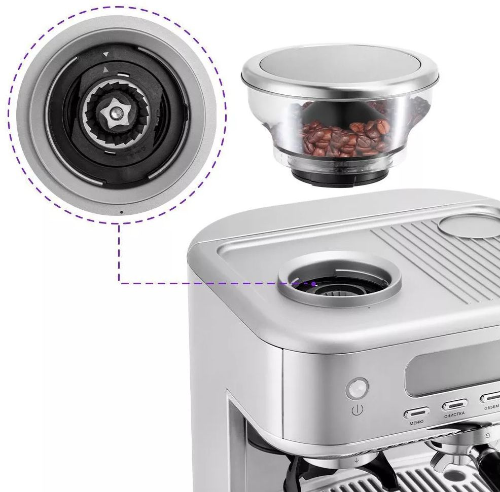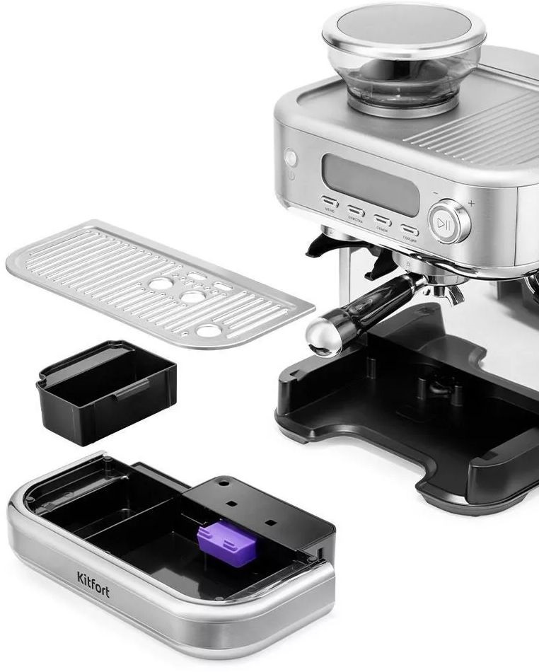 встроенная кофемолка, дисплей, капучинатор, съемный дренажный отсек для капель, съемный поддон для капель, съемный резервуар для воды