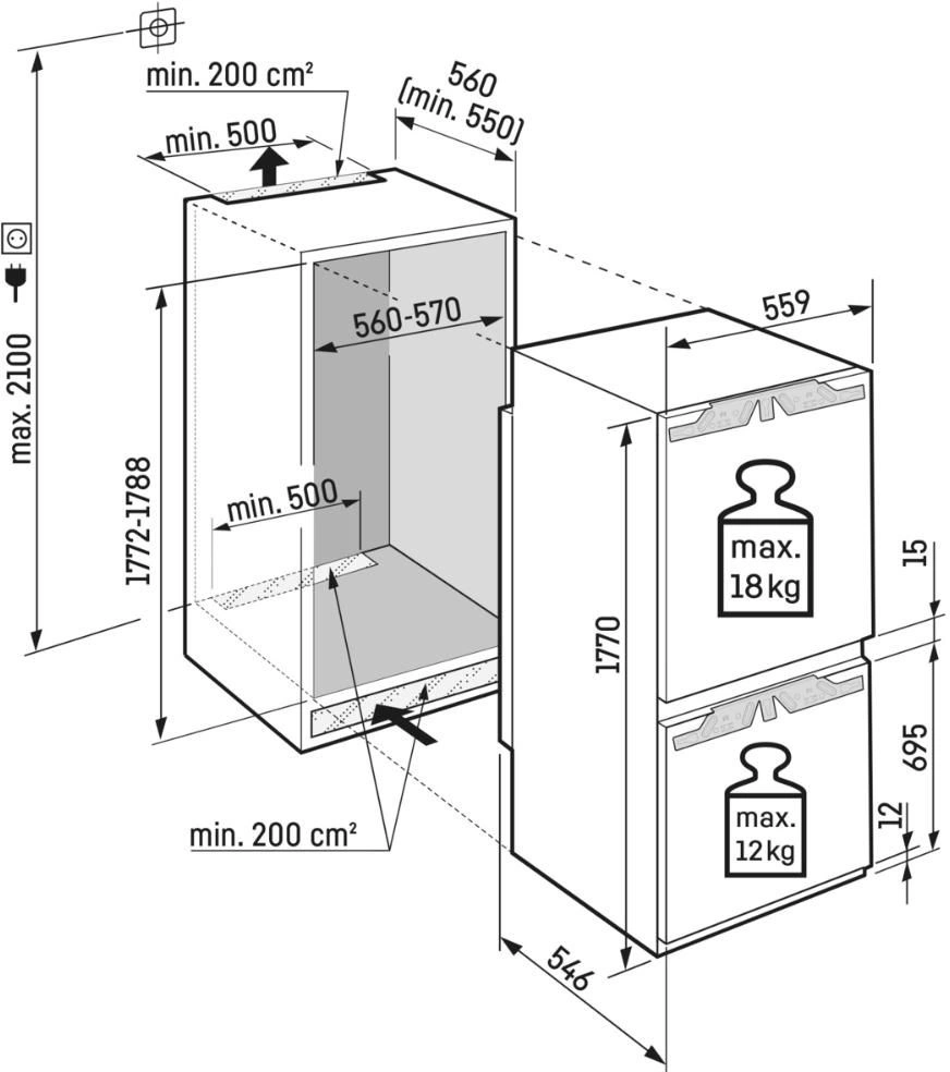 Расположение морозильной камеры