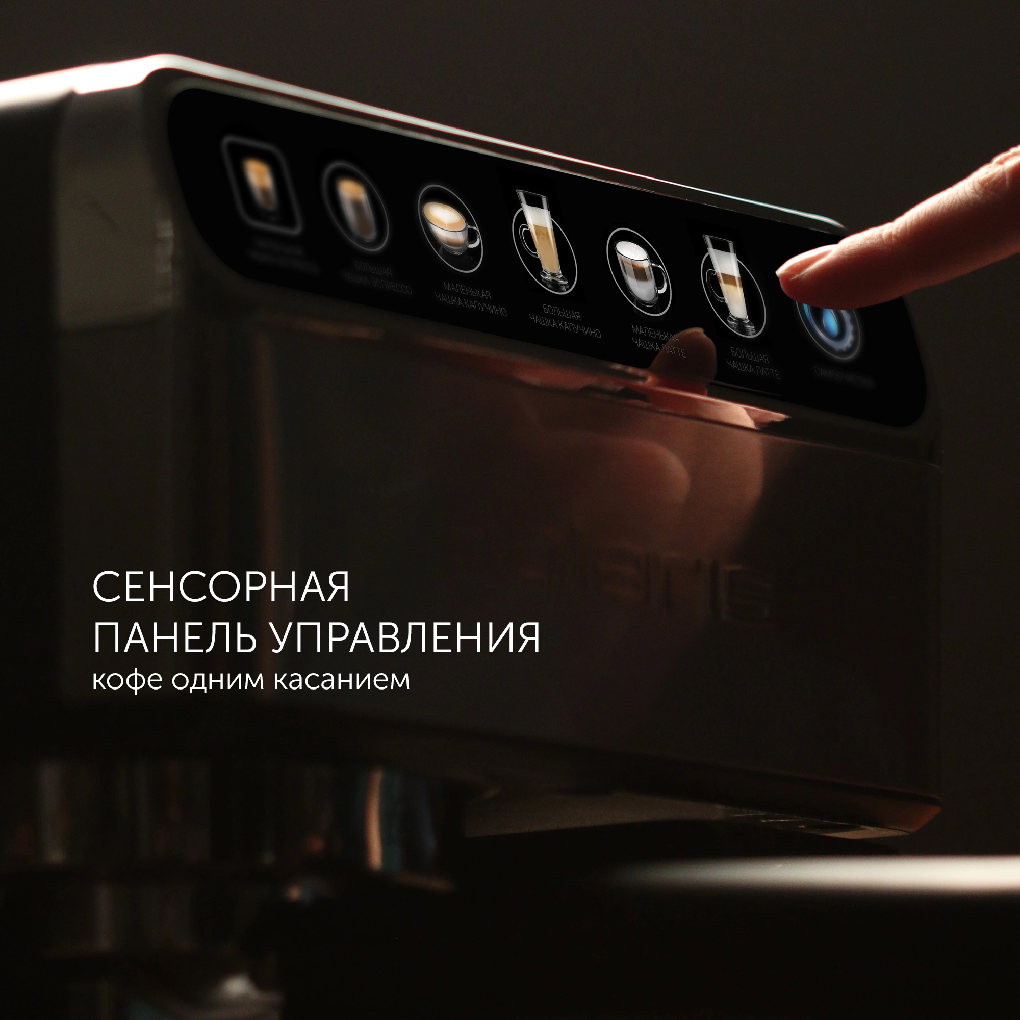 дисплей, капучинатор, панель для подогрева чашек, съемный поддон для капель, съемный резервуар для воды