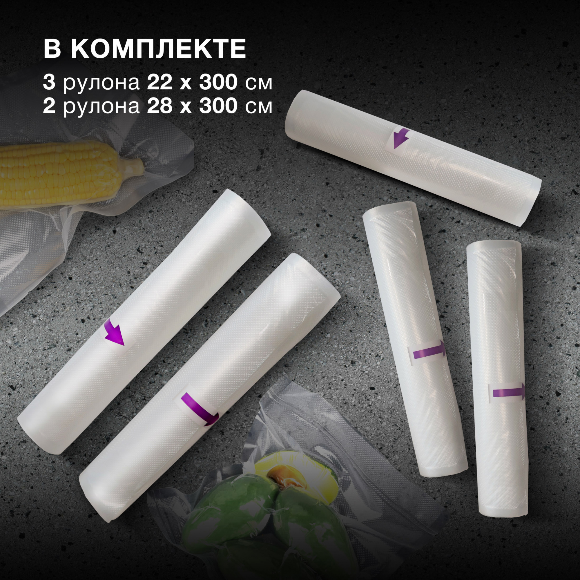 В комплекте Hyundai HY-VA0 поставляется 3 рулона пакетов – 22х300 см и 2 рулона – 28х300 см.
