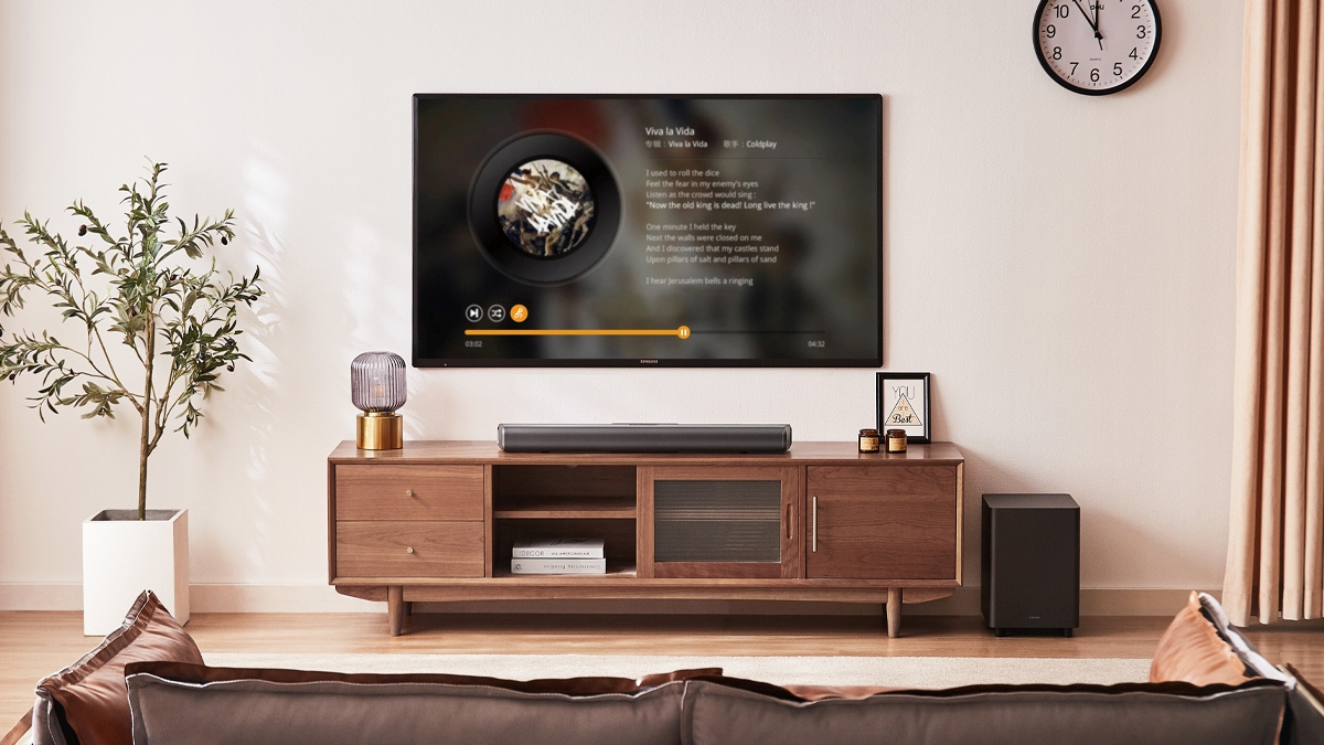 В комплекте: пульт управления, крепление на стену, 2 силовых кабеля, адаптер питания, кабель 4К HD HDMI, кабель 3.5мм-RCA, оптоволоконный кабель, 5 шурупов, 5 дюбелей, 2 крючка, инструкция пользователя