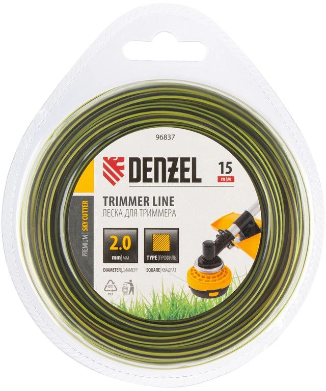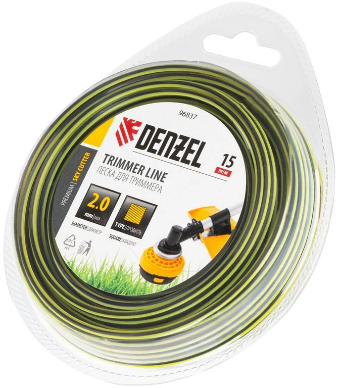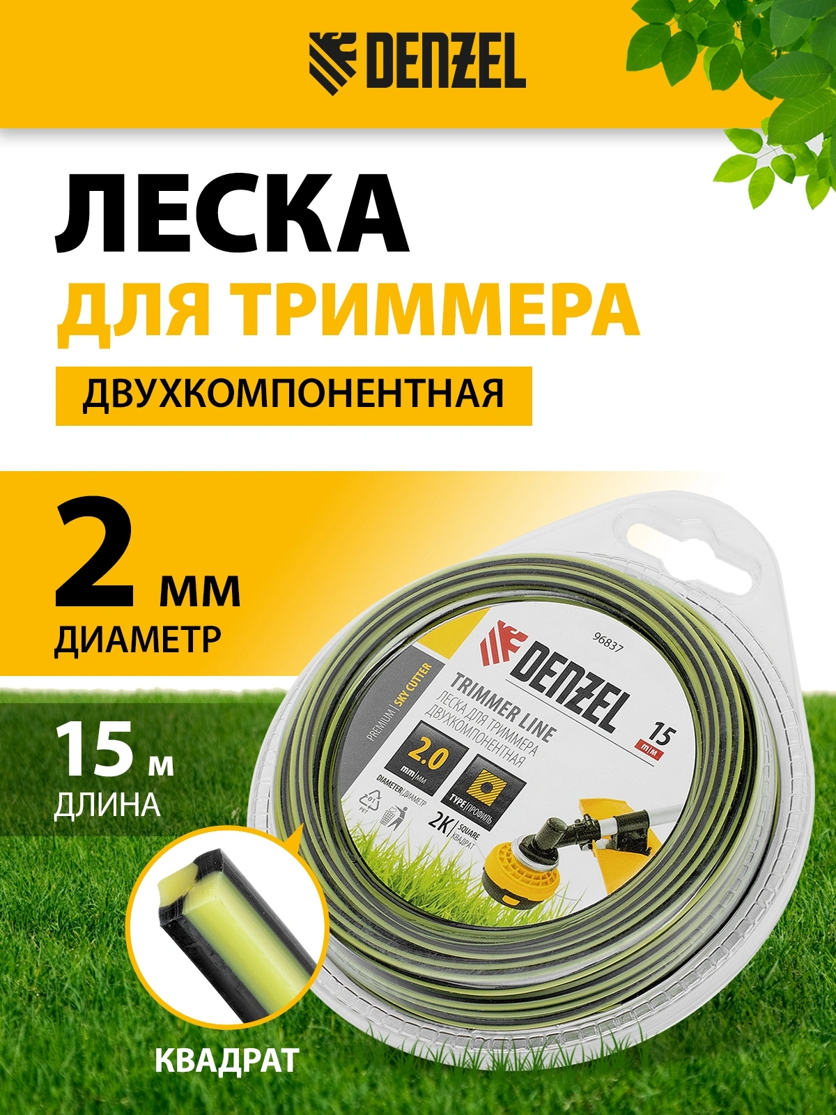 Двухкомпонентная квадратная леска для триммера Denzel SkyCutter 96837 размером 2,0 мм х 15 м, в блистере, используется для скашивания густой газонной травы и борьбы с сорняками. Успешно справляется даже с жесткими и толстыми стеблями, например, с борщевиком.