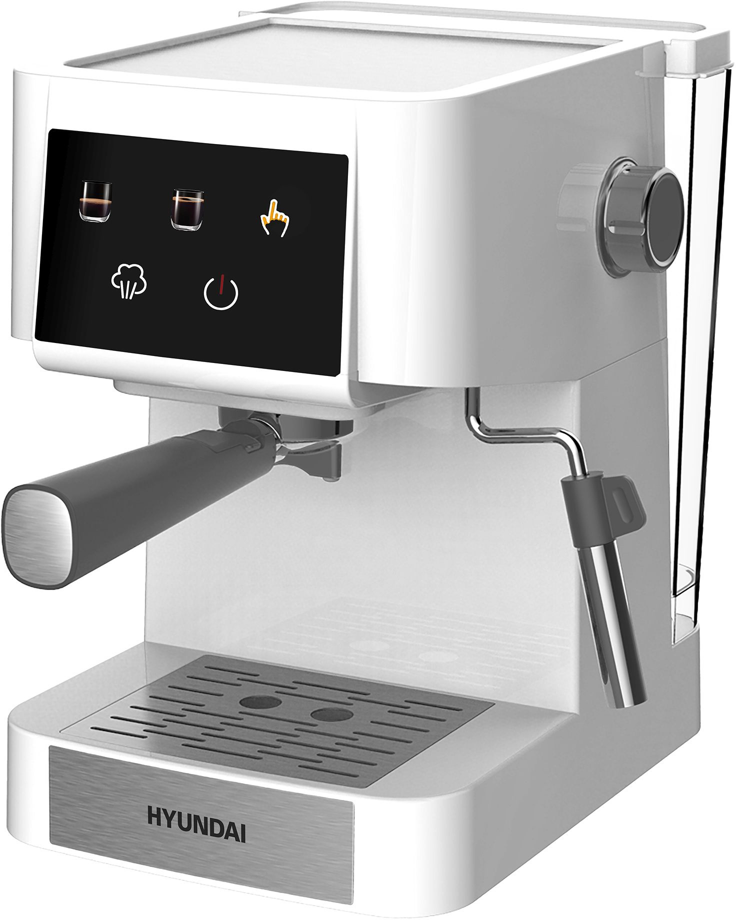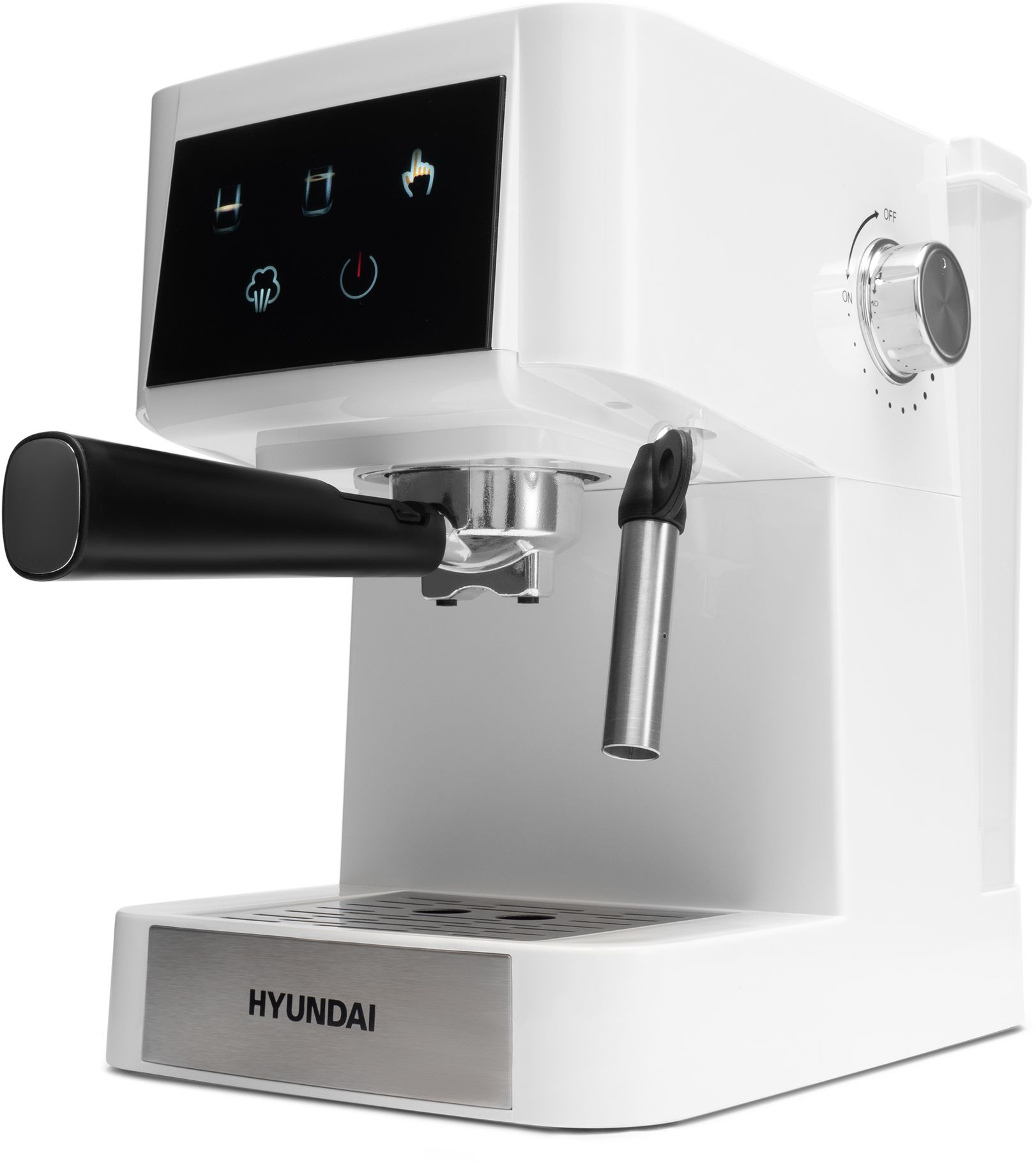 Рожковая кофеварка Hyundai HEM-3203 с электронным управлением позволит легко и быстро сварить крепкий эспрессо и при желании превратить его в капучино или флэт-уайт при помощи встроенного ручного капучинатора.