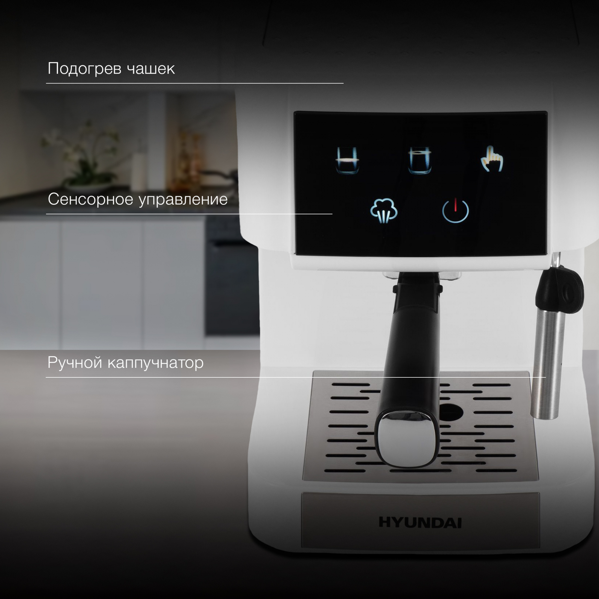 Подогреваемая верхняя панель для нагрева чашки, чтоб не допустить быстрого остывания кофе после налива.