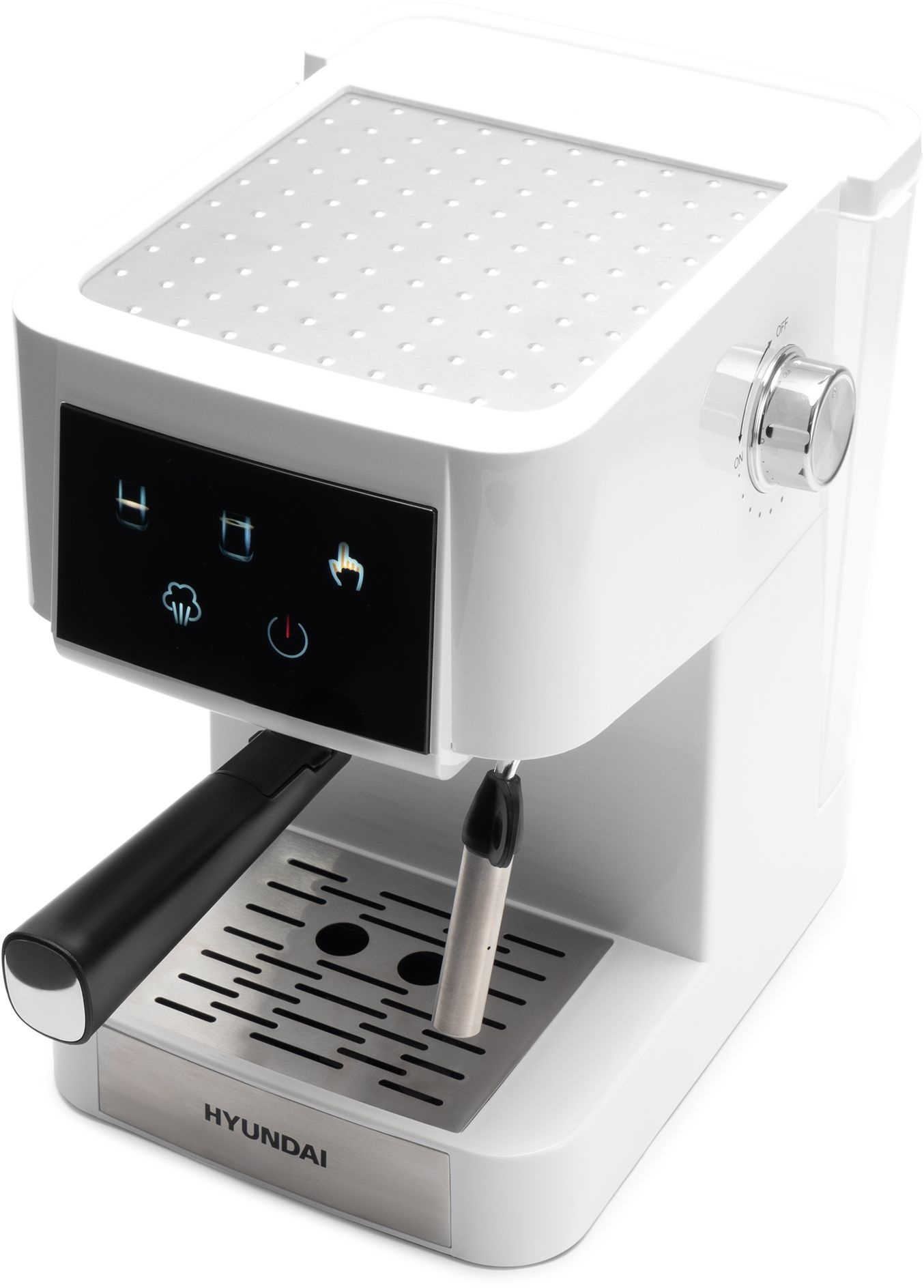 Рожковая кофеварка с ручным капучинатором Hyundai HEM-3203 раскрывает широкие возможности для приготовления напитков из молотых кофейных зерен. Функция подачи пара и горячей воды позволяет подогреть молоко и взбить его в пену, а также предварительно подогреть чашку.