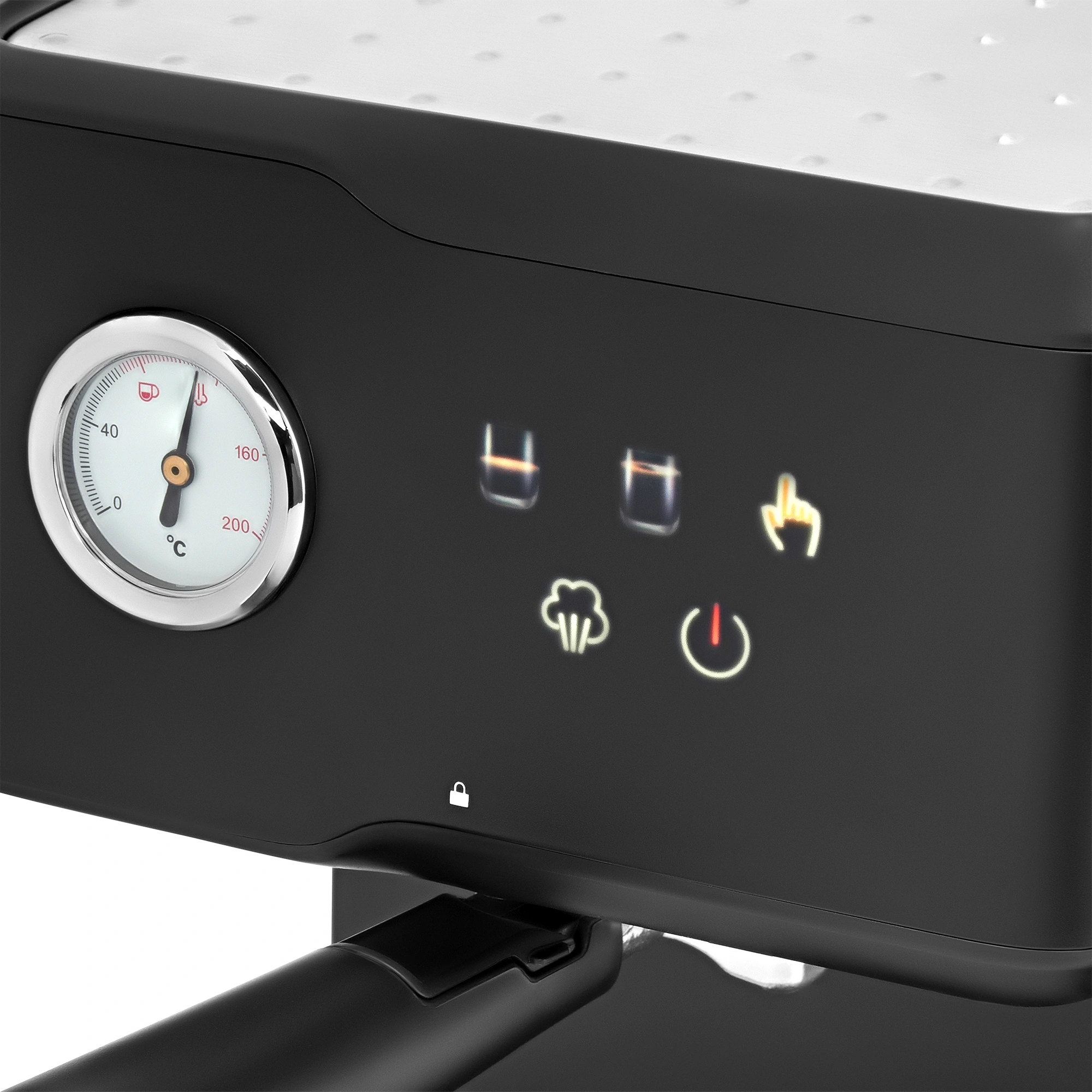Встроенный аналоговый термометр позволяет контролировать температуру нагрева воды, добиваясь оптимального уровня экстракции в зависимости от вкусовых предпочтений.