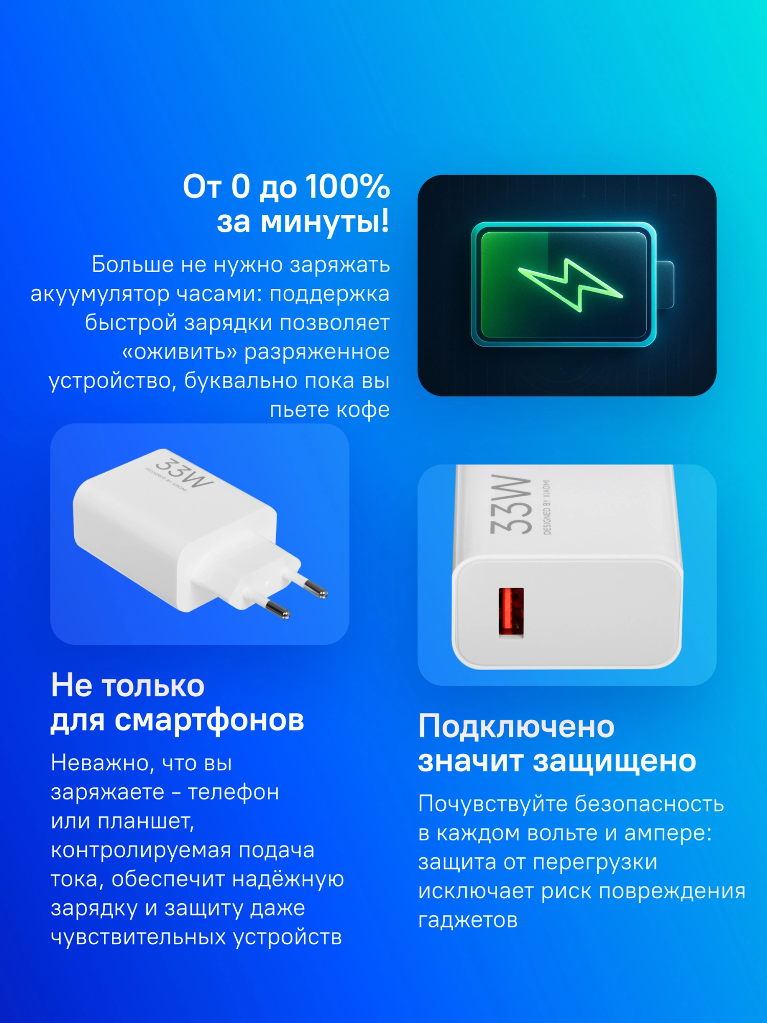 Сетевое зарядное устройство Xiaomi 33W Charging Combo Type-A придет на выручку в том случае, если оригинальное ЗУ от вашего смартфона вышло из строя или было утеряно.Модель с компактными размерами имеет высокие электрические параметры, что обеспечивает быстроту процесса зарядки мобильной техники.Исп