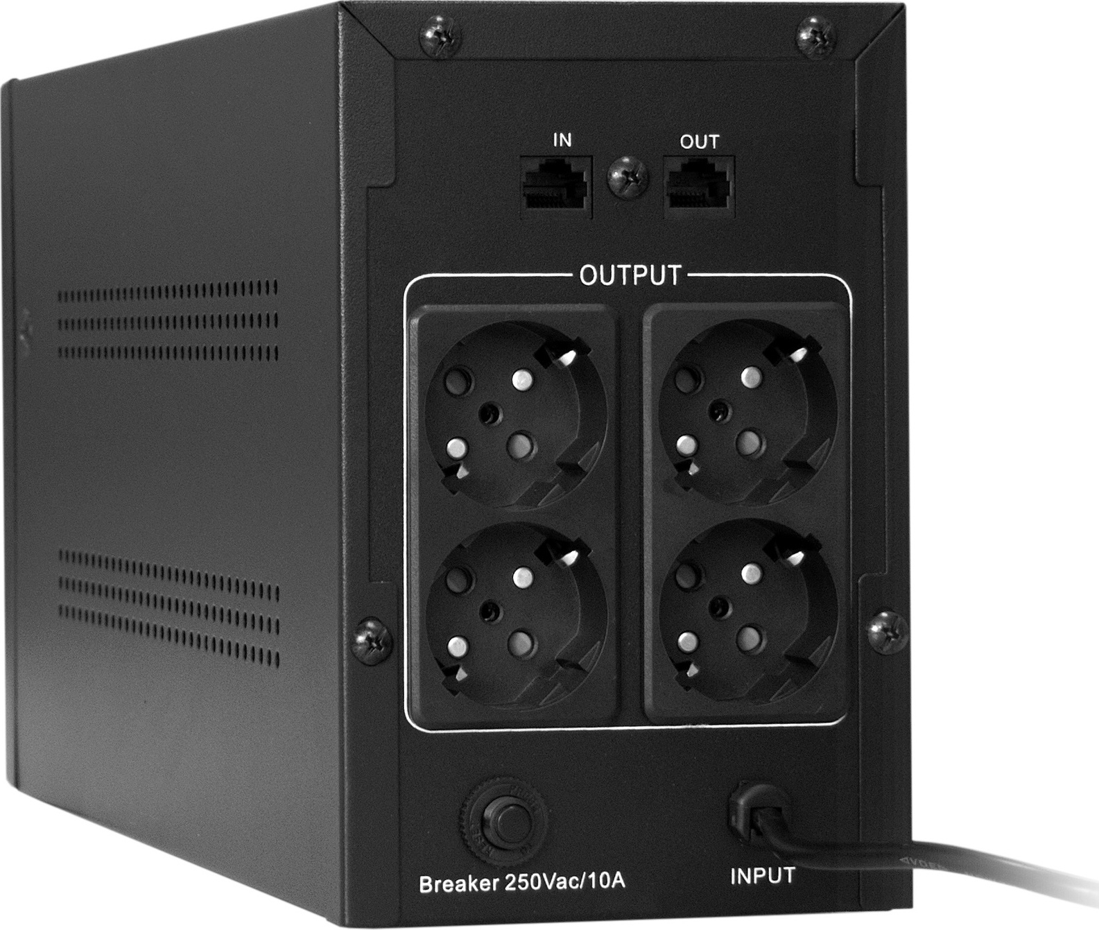 защита сети (порт RJ-45), от глубокого разряда батареи, от импульсных помех, от короткого замыкания, от перегрузки