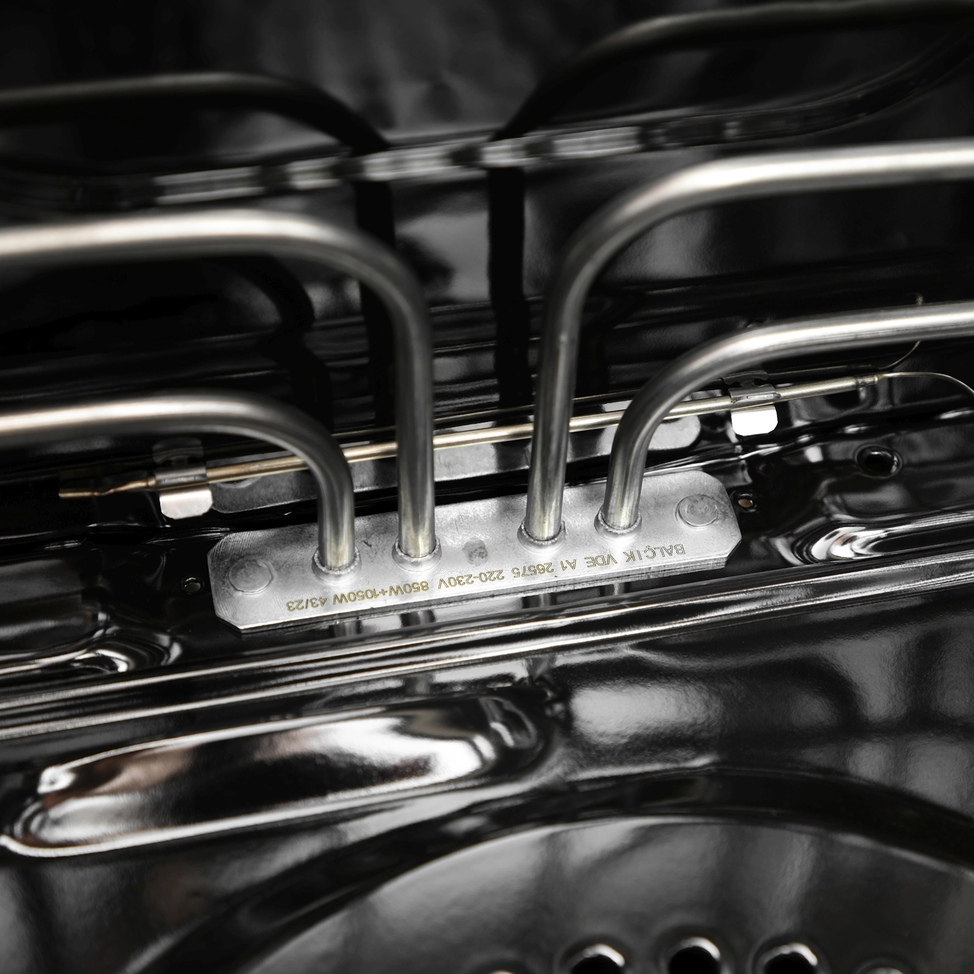 Двойное стекло дверцы позволяет быстро прогреть духовку до необходимой температуры, поддерживать соответствующий рецепту уровень прогрева, не расходуя большого количества электроэнергии. Благодаря продуманным конструктивным решениям устройство относится к классу энергоэффективности А и безопасно в эксплуатации.
