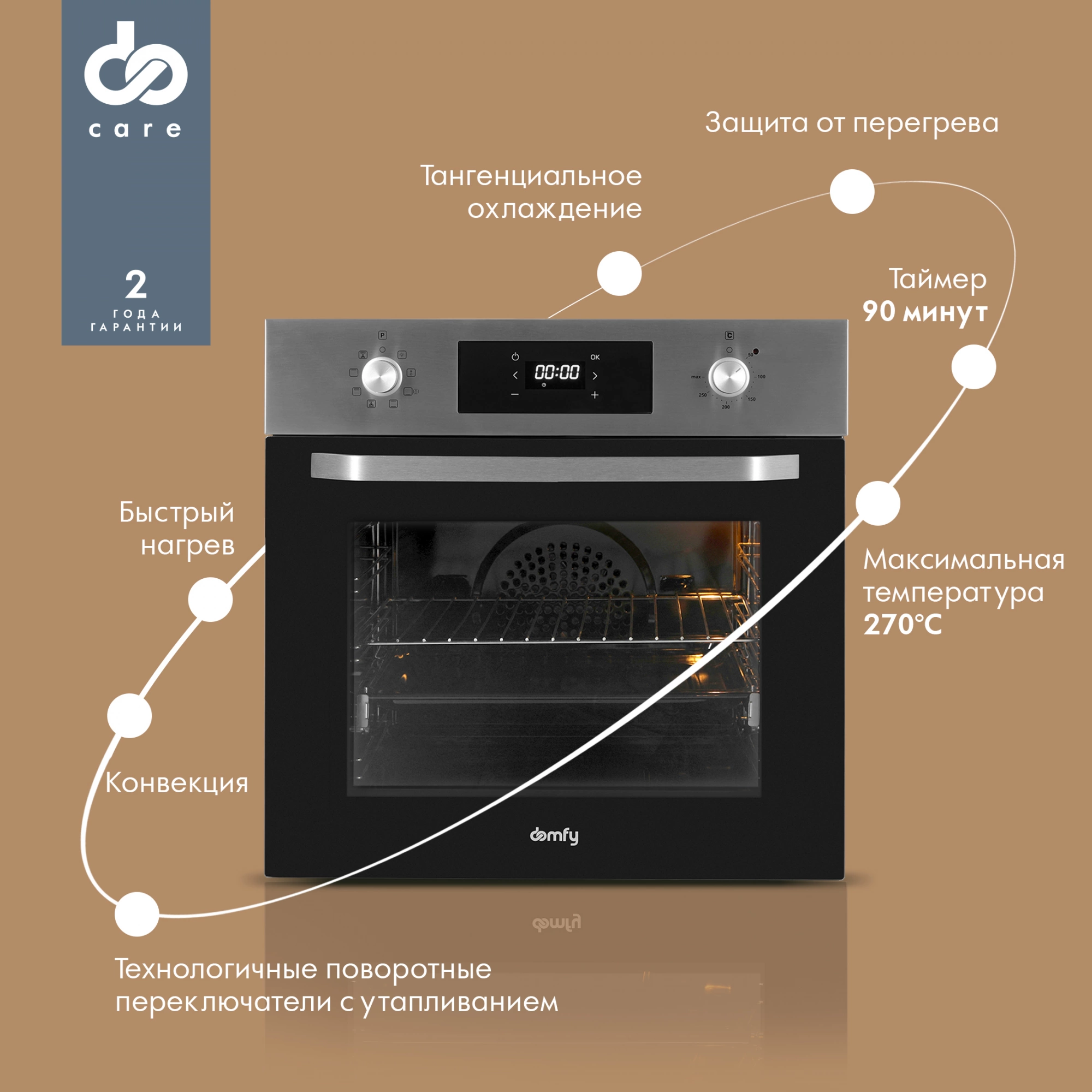 Встраиваемый электрический духовой шкаф DOMFY DM6642EO IX идеально подойдет тем, кто предпочитает домашнюю кухню. Модель проста и удобна в установке, эксплуатации и уходе. В комплектацию входят крепеж, противень и решетка для гриля.
