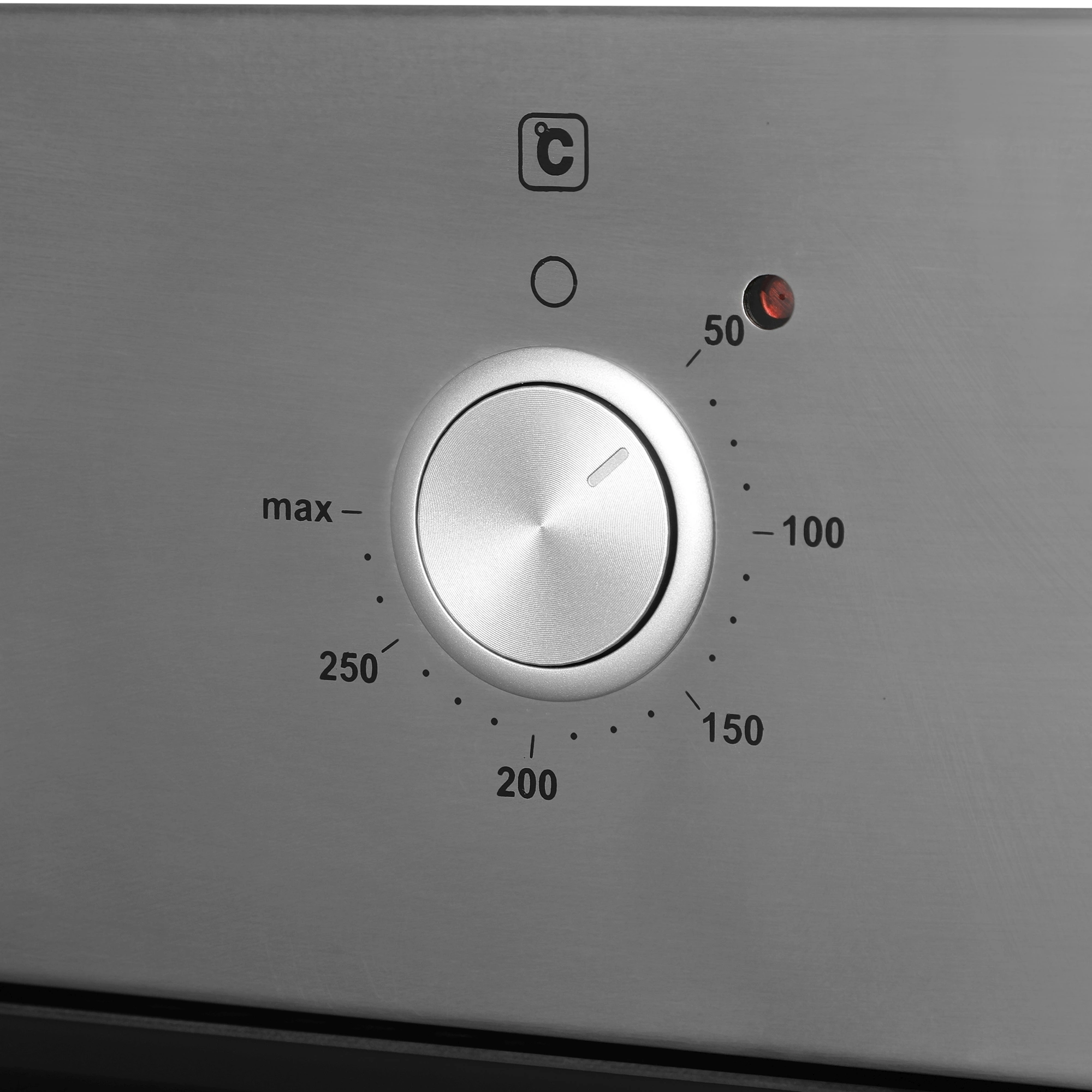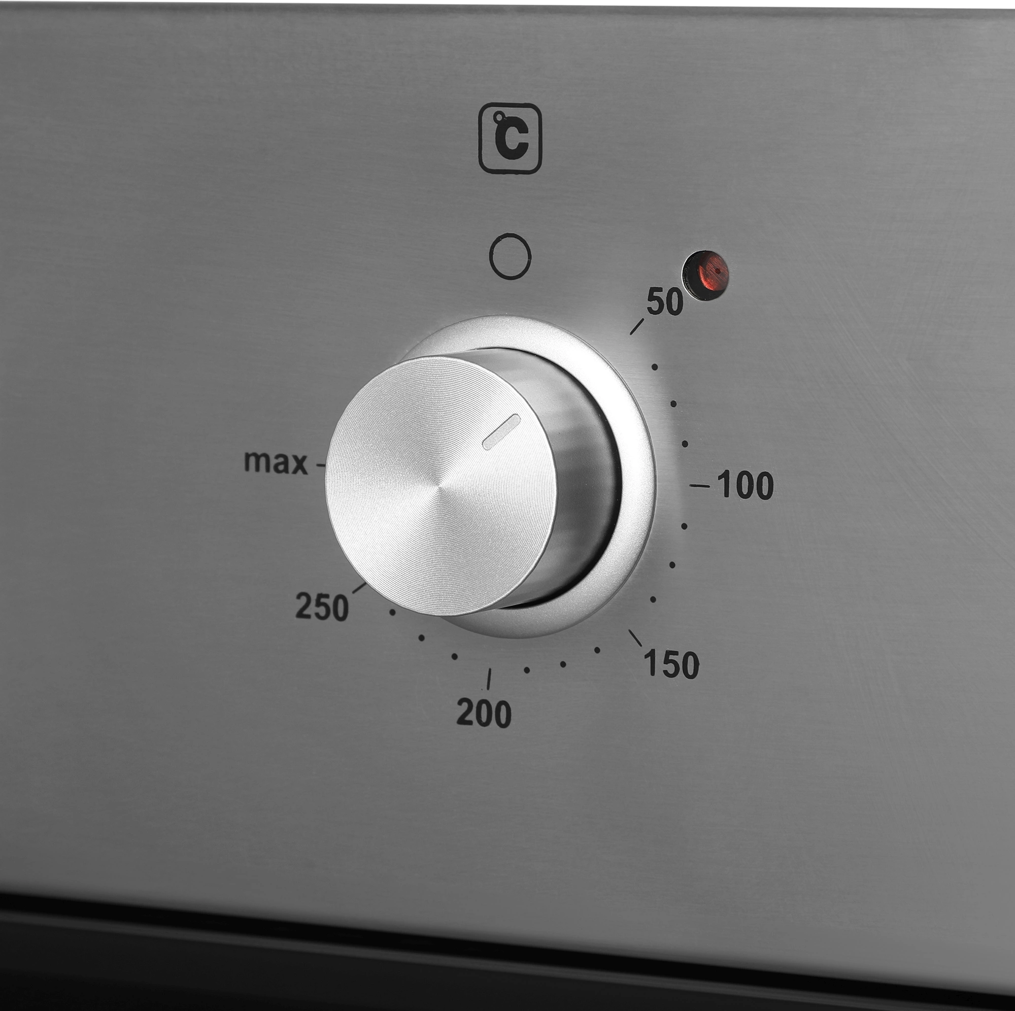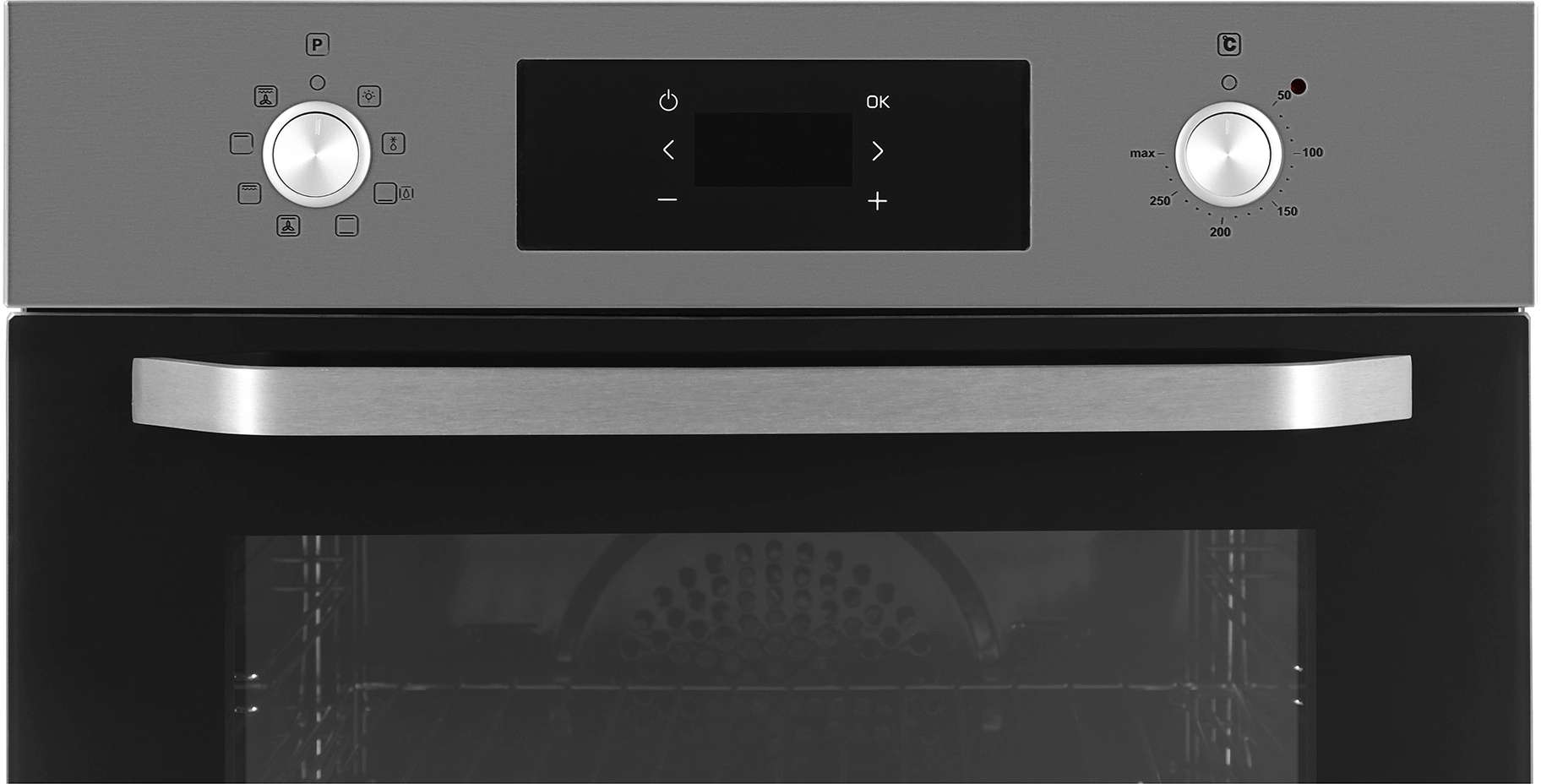 Двойное закаленное стекло дверцы способствует сохранению жара в духовке и предотвращает ожог в случае прикосновения снаружи.