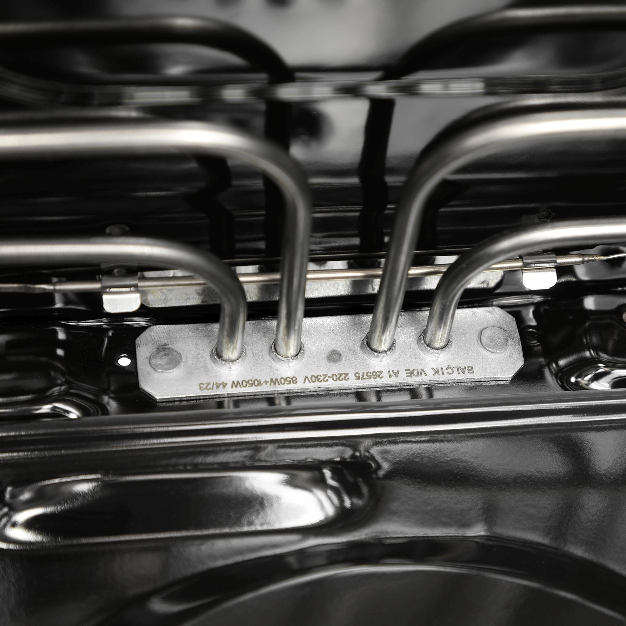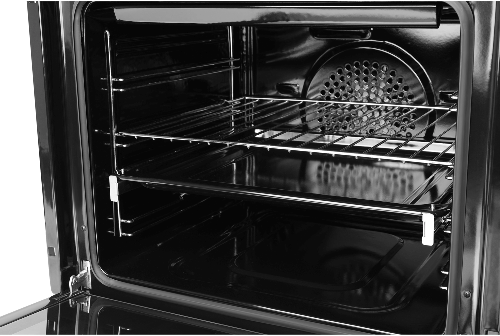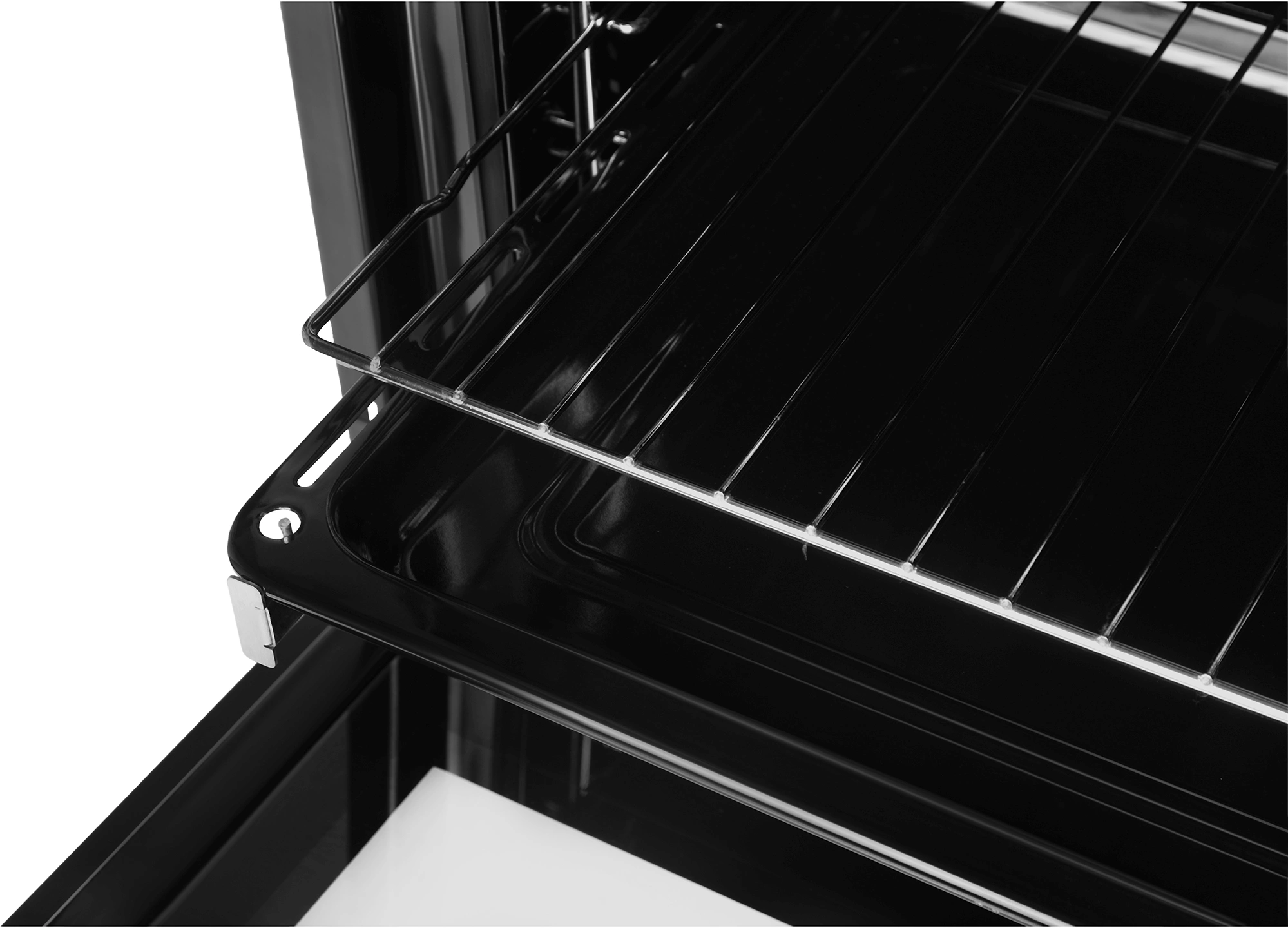 Двойное закаленное стекло дверцы способствует сохранению жара в духовке и предотвращает ожог в случае прикосновения снаружи.