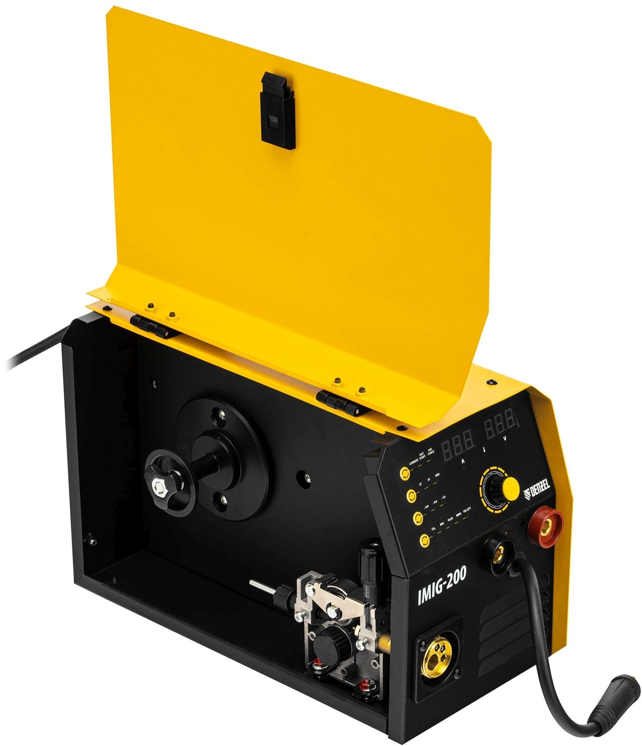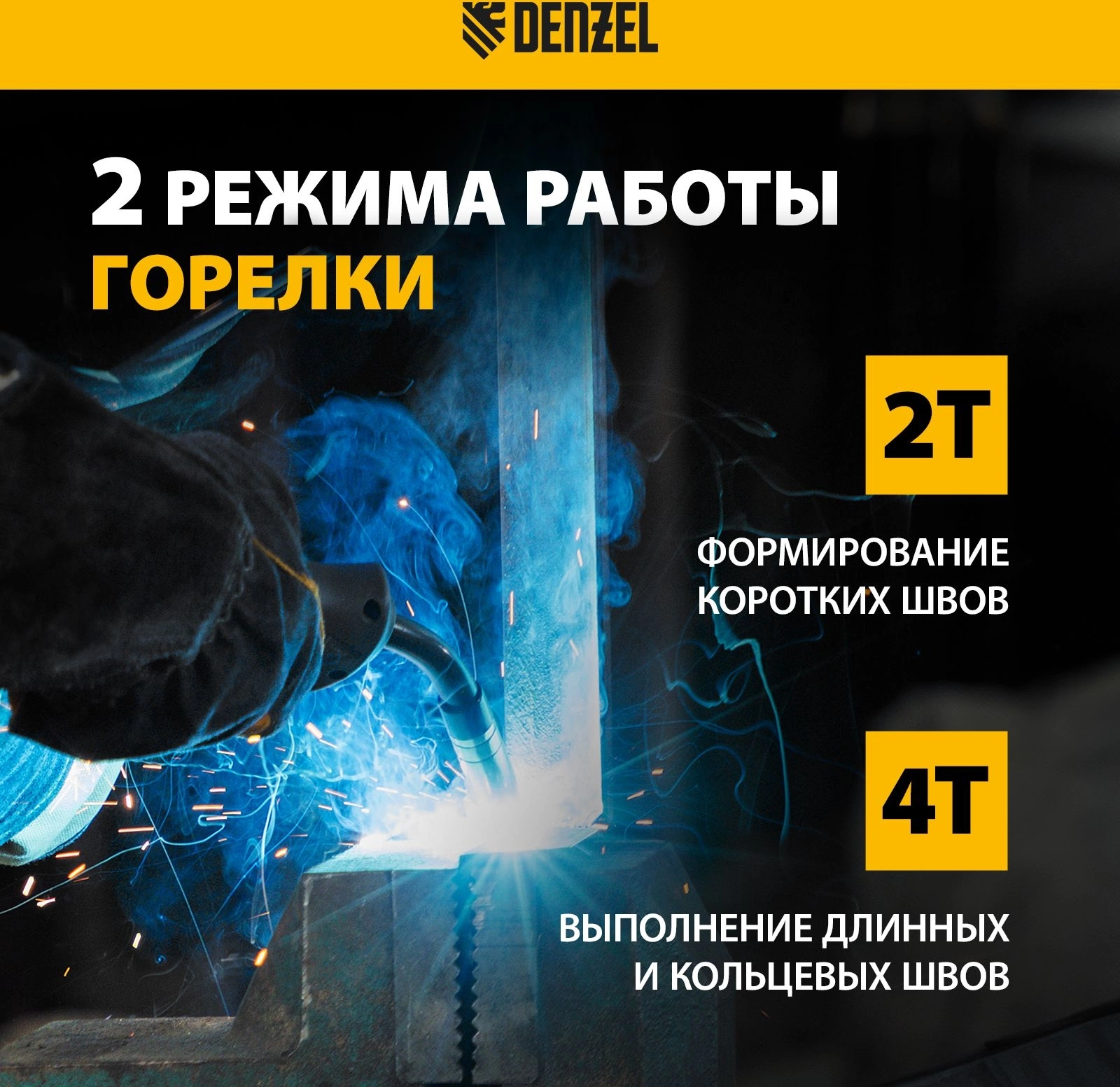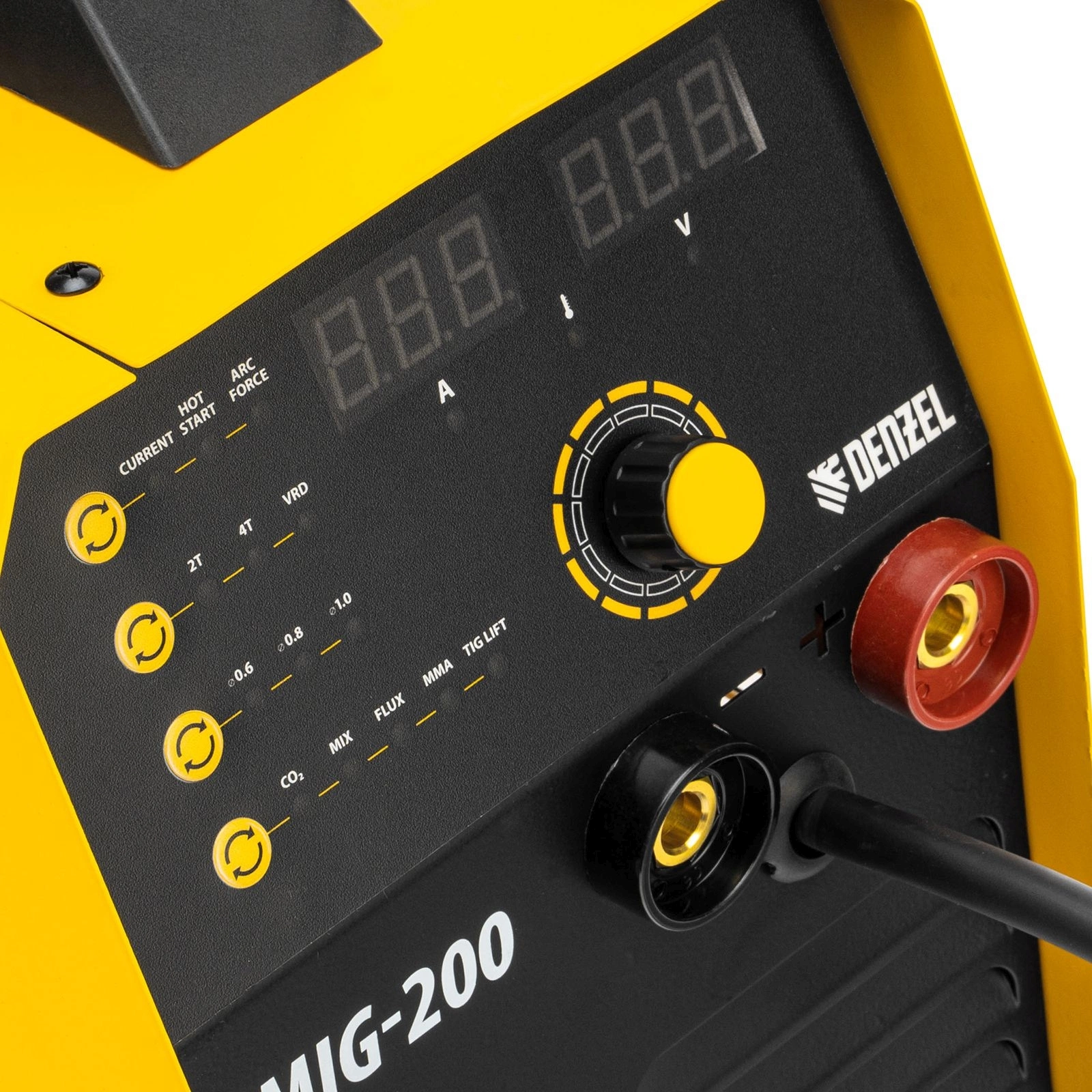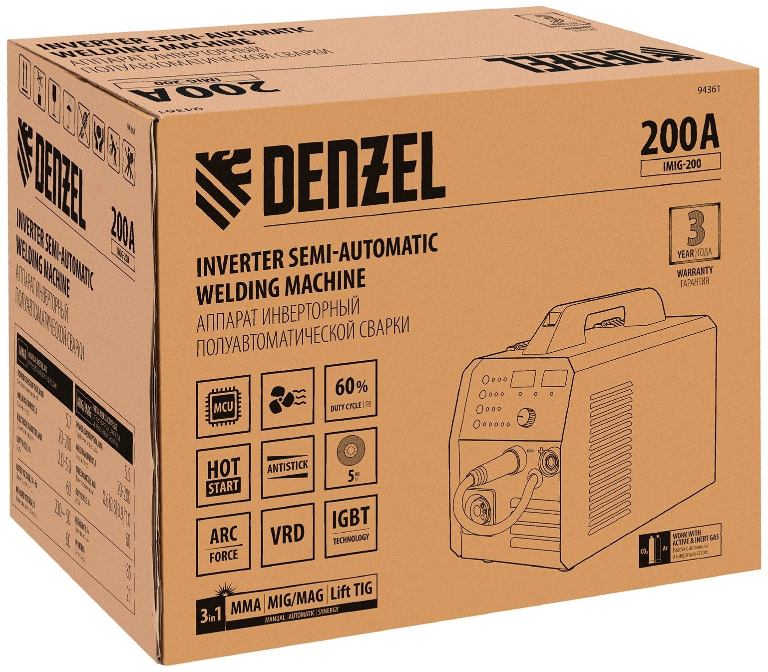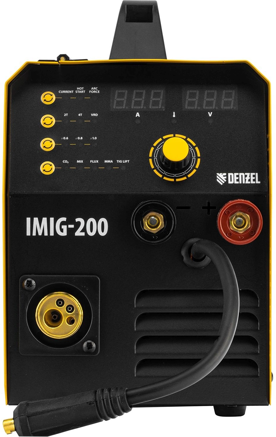 Инверторный аппарат полуавтоматической сварки Denzel IMIG-200 94361 совместим с катушками массой до 5 кг. Подходит для сварки изделий из конструкционных сталей. Аппарат разработан с использованием передовой инверторной технологии IGBT, что обеспечивает стабильный сварочный ток на выходе.