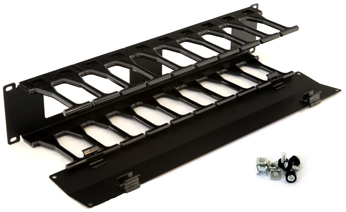 Кабельный органайзер горизонтальный Hyperline CMF-2U-FPL106-MCOV-RAL9005 пальцы 2U шир.:19" глуб.:106мм