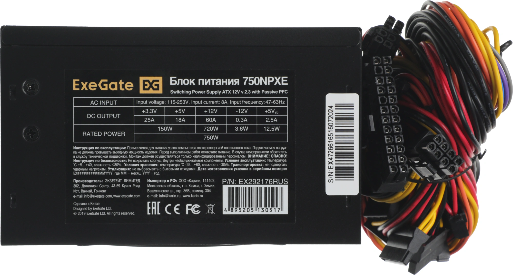Блок питания Exegate ATX 750W 750NPXE