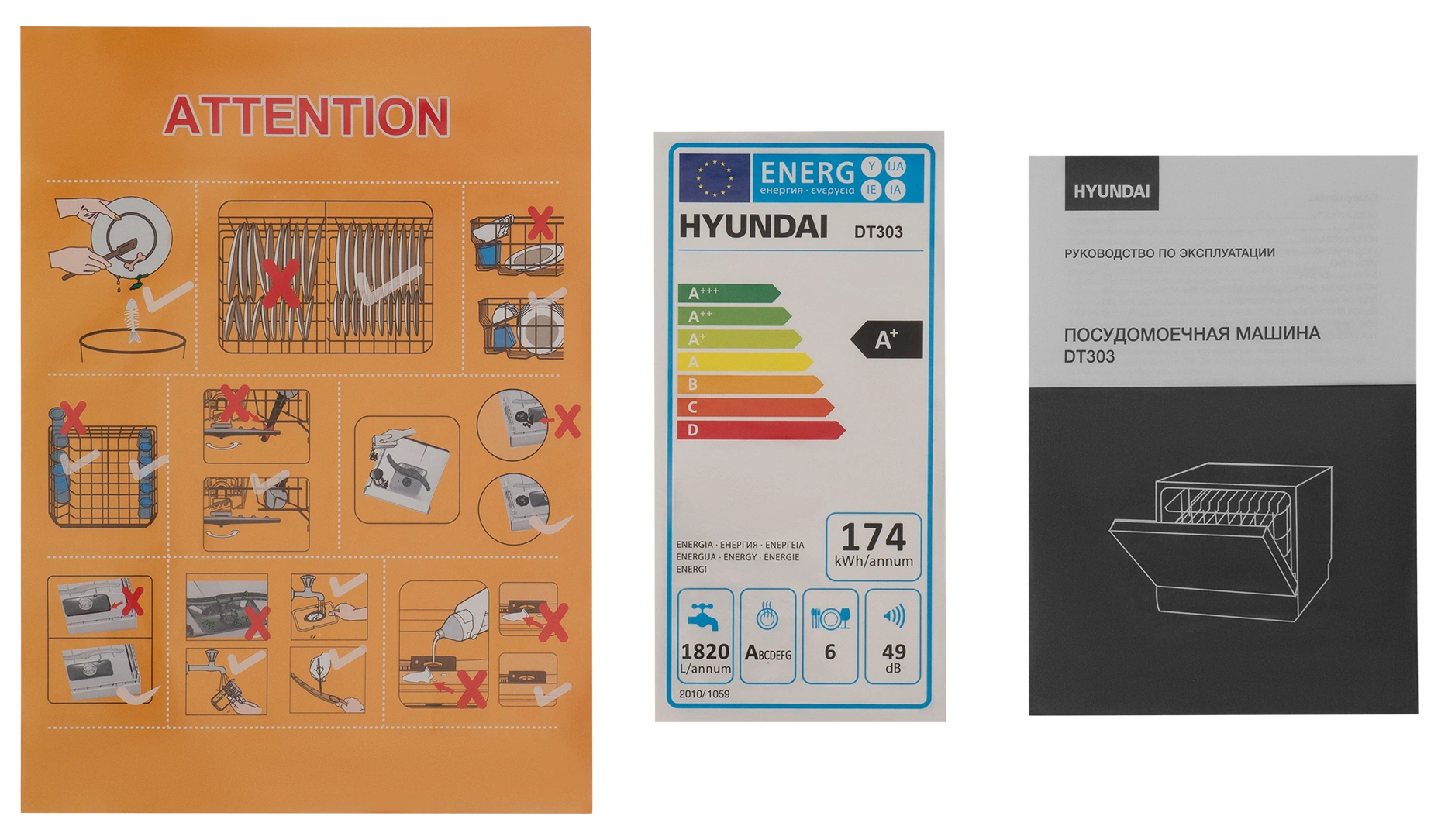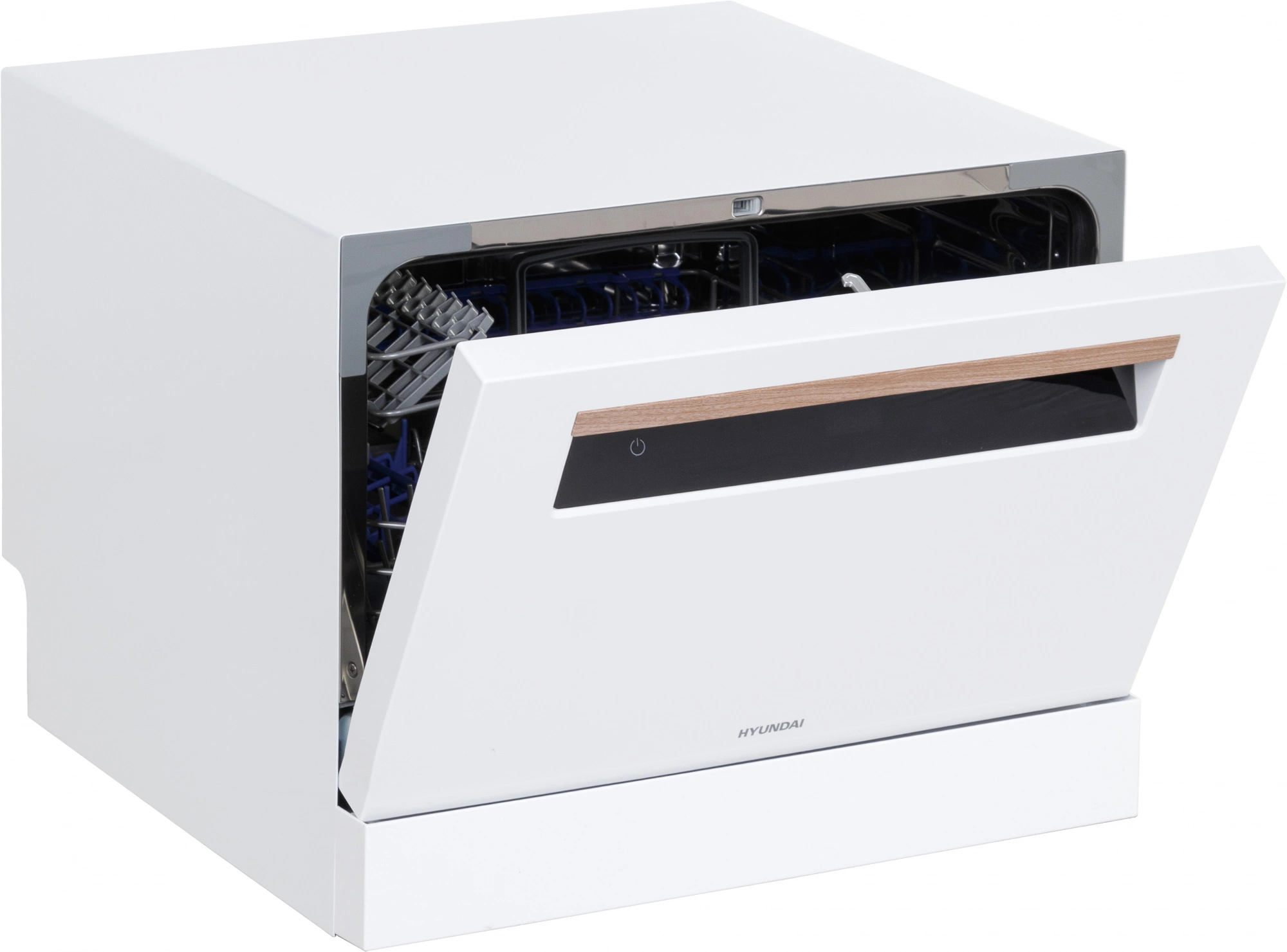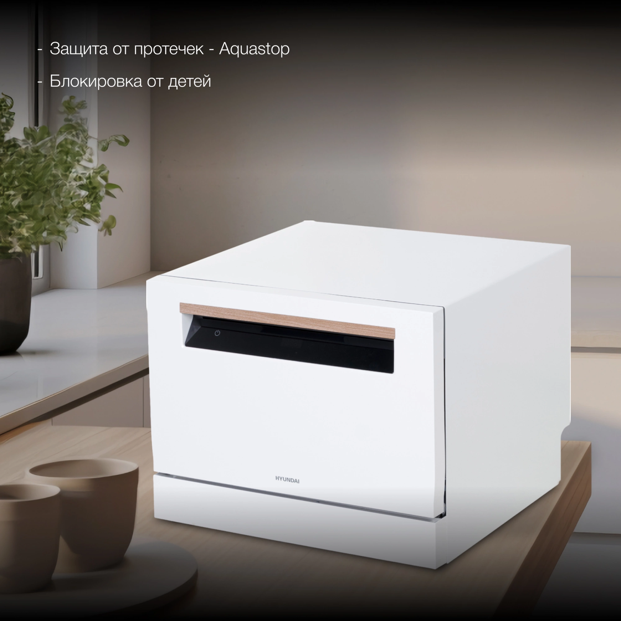 Посудомоечная машина Hyundai DT304 прекрасно впишется в кухонную обстановку небольшой квартиры или интерьер летнего дома. Компактные размеры позволяют установить ее на столе или встроить в нишу.