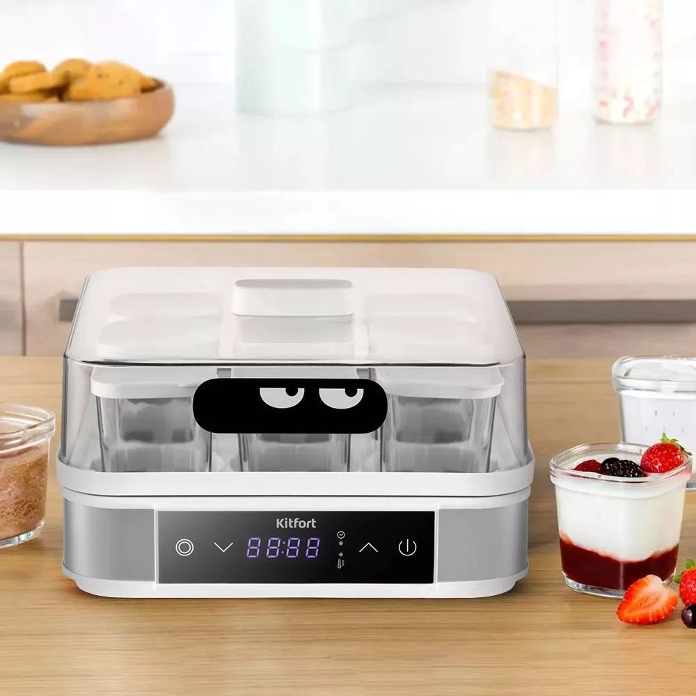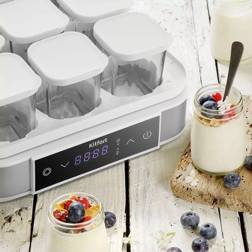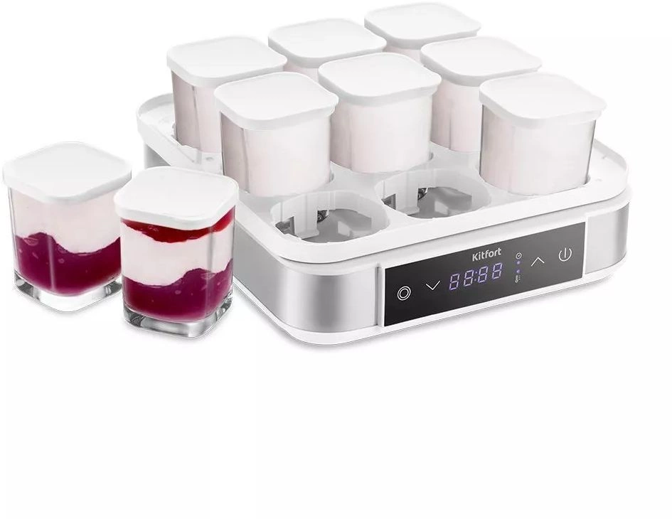 Йогуртница КТ-4096 предназначена для приготовления домашнего йогурта. Прибор укомплектован 9 стеклянными баночками по 170 мл каждая, в которых можно хранить готовый йогурт. Йогуртница равномерно нагревает баночки, поддерживая заданную температуру.