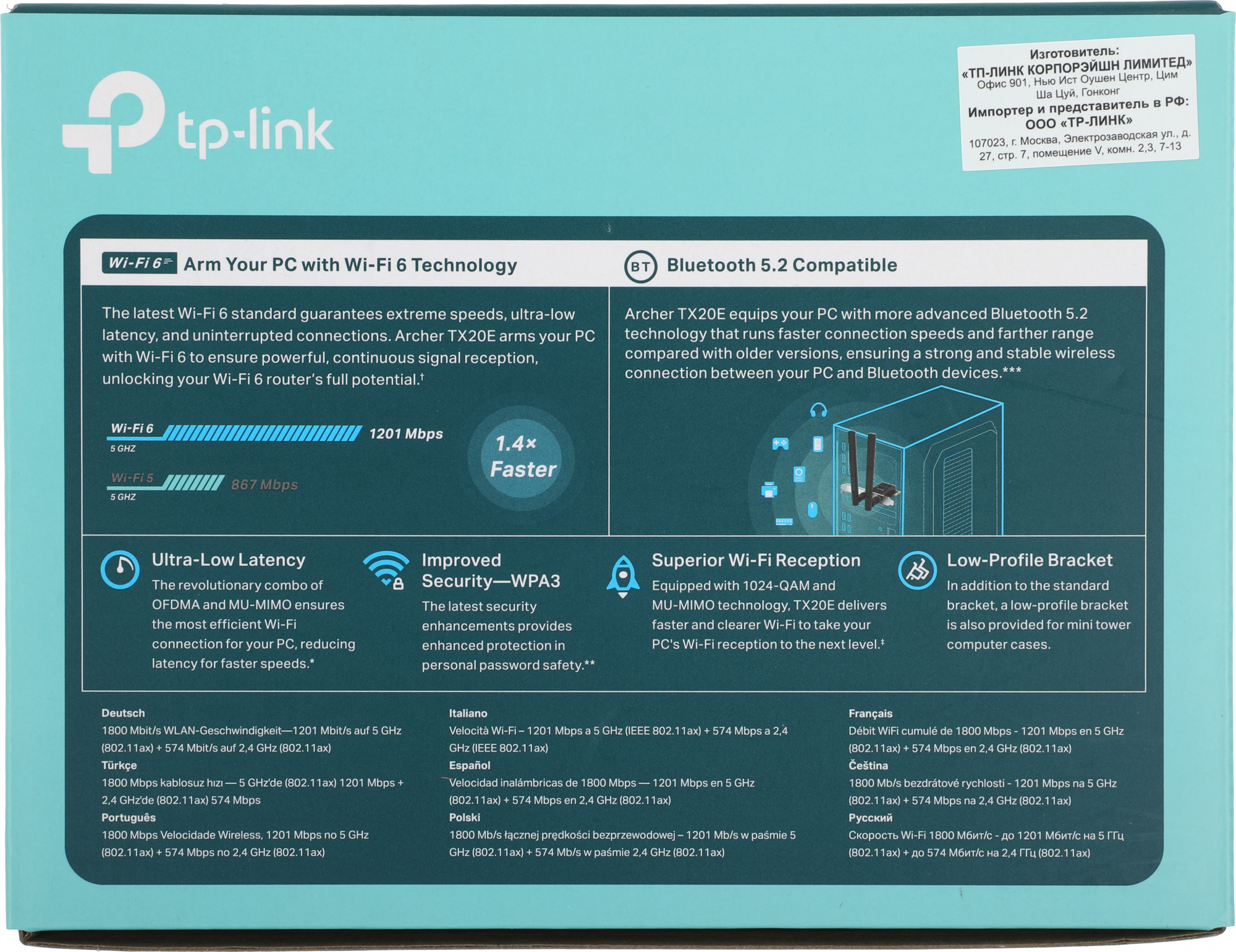 MU-MIMO, OFDMA, WPA3, Bluetooth 5.2. Непревзойдённая скорость Wi-Fi 6 — до 574 Мбит/с (2,4 ГГц) + до 1201 Мбит/с (5 ГГц)