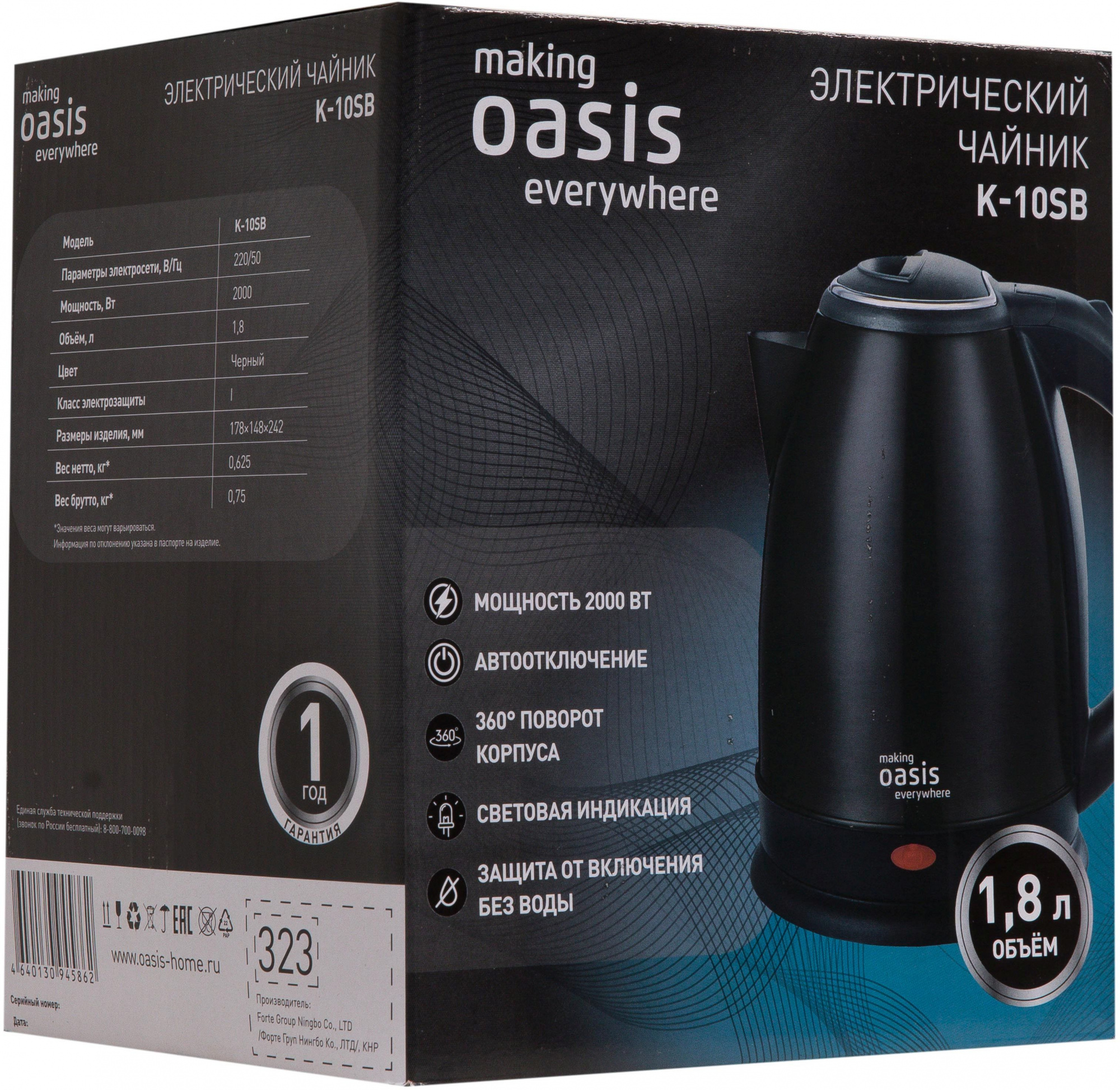 1.8л. 2000Вт черный корпус: металл/пластик