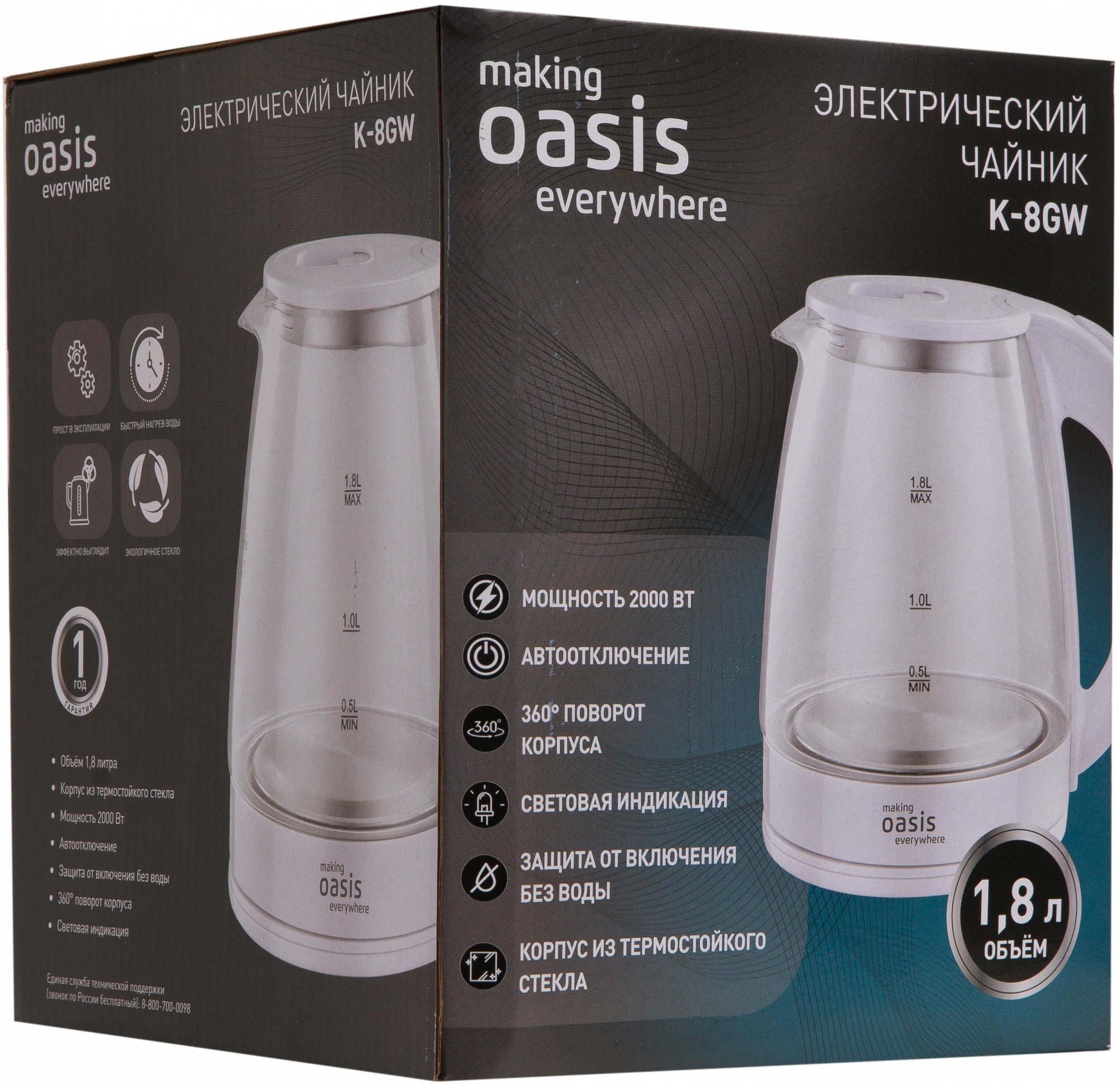 1.8л. 2000Вт белый корпус: стекло/пластик