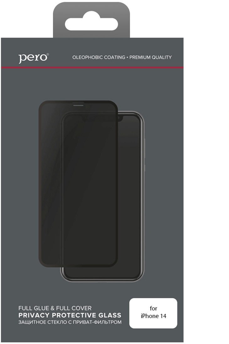 Защитное стекло PERO Full Glue Privacy для iPhone 14, черное . Твердость стекла 9H, толщина 0.3 мм. Privacy стекло делает дисплей смартфона видимым исключительно тому, кто смотрит на него только под прямым углом. Не препятствует одновременному использованию с чехлом для смартфона.