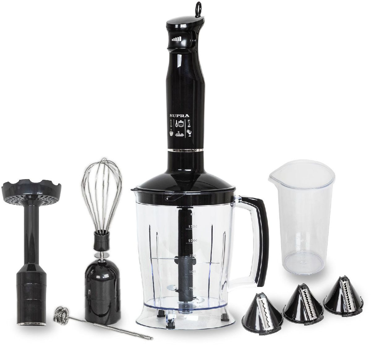 венчик для взбивания молочной пенки, измельчитель с конусными насадками 1,25 л., насадка для картофельного пюре