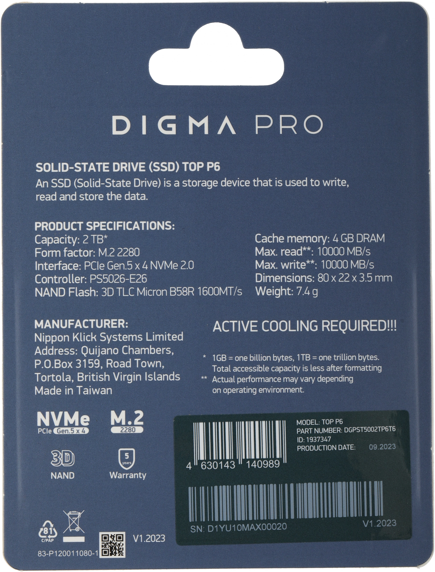 SSD DIGMA PRO TOP P6 — это высокопроизводительный твердотельный накопитель, предназначенный для использования в компьютерах. Он обеспечивает быструю загрузку операционной системы и приложений, а также быстрый доступ к данным.