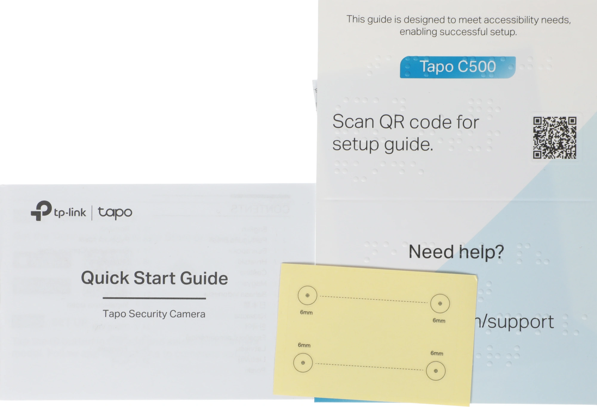 Камера, Адаптер питания, Винты и дюбели, Крепёжный шаблон, Водонепроницаемая прокладка, Краткое руководство по началу работы