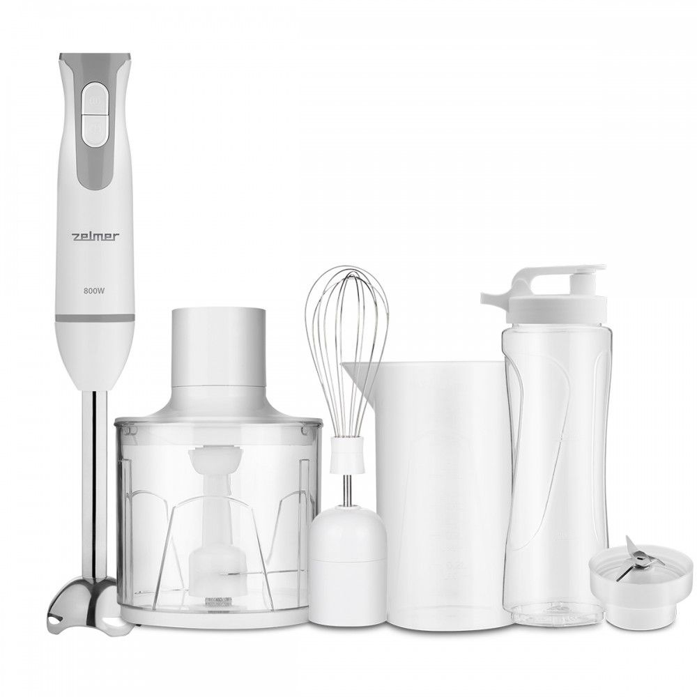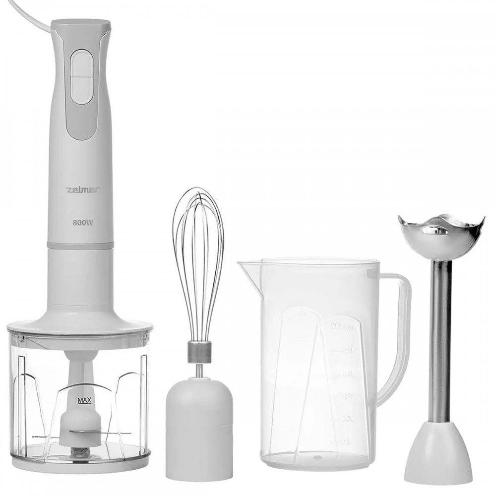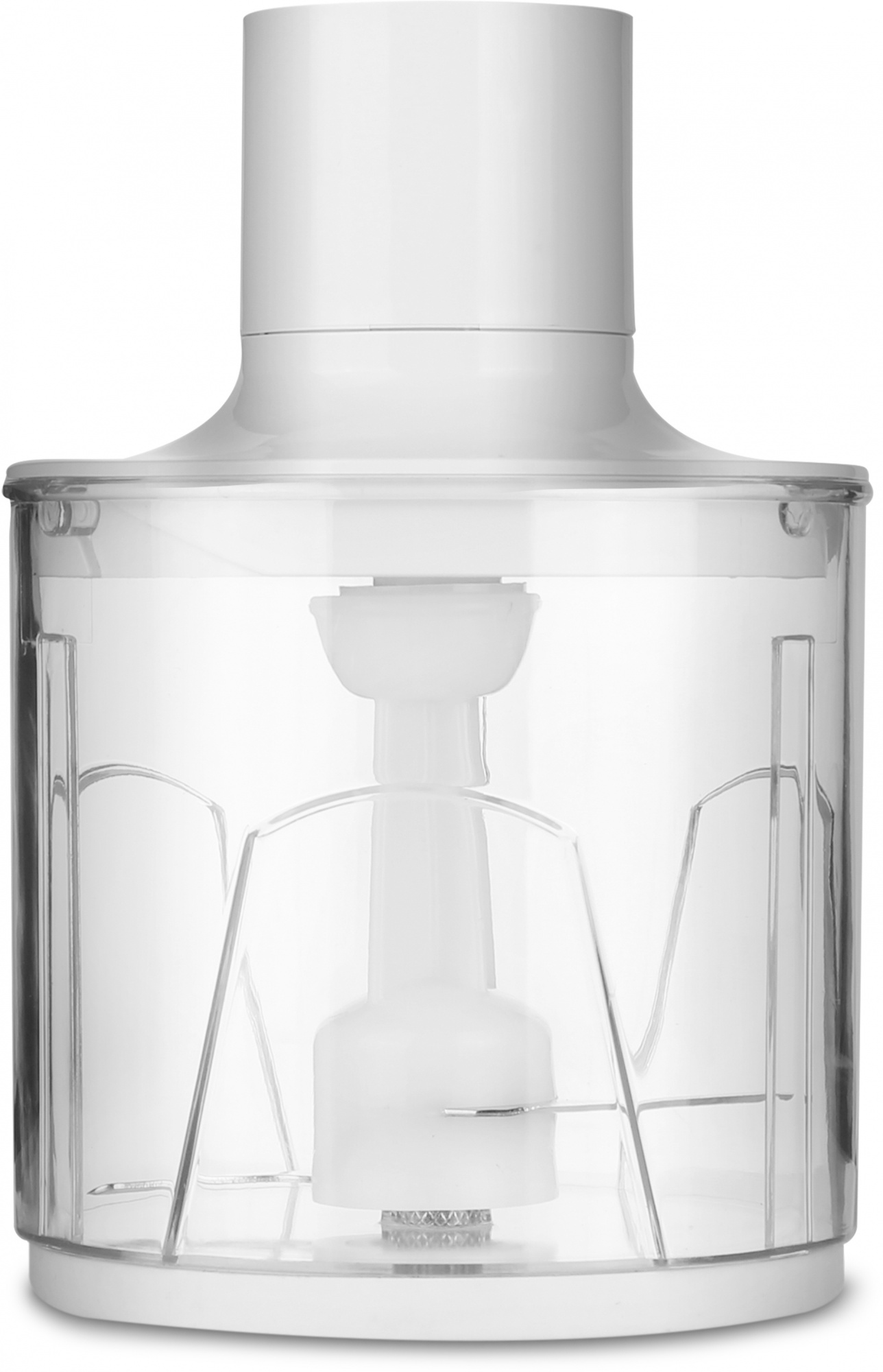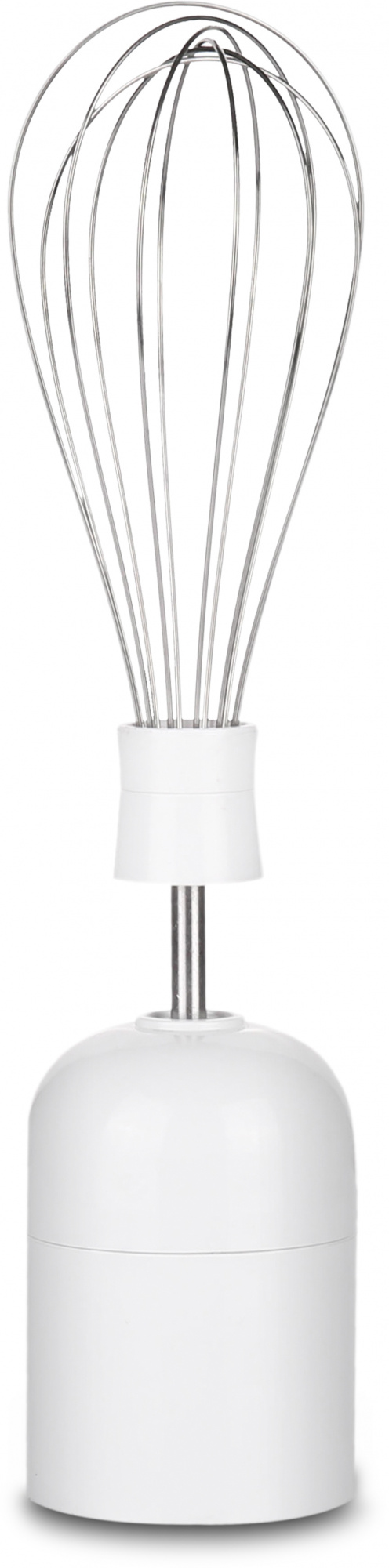 функция: "Турбо", чаша с измерительной риской, веньчик для взбивания, измельчитель, насадка для смешивания спортивного питания, металлическая погружная часть