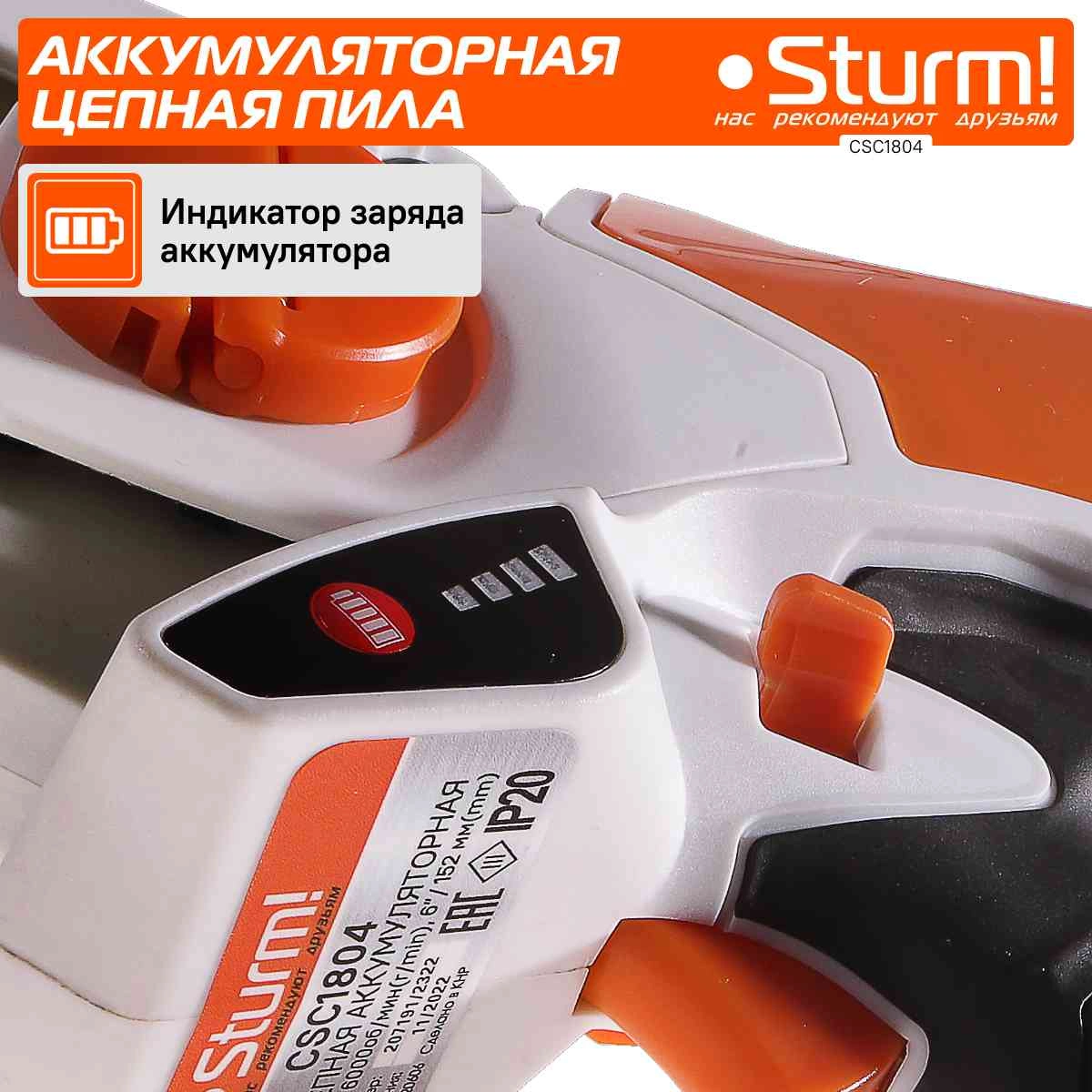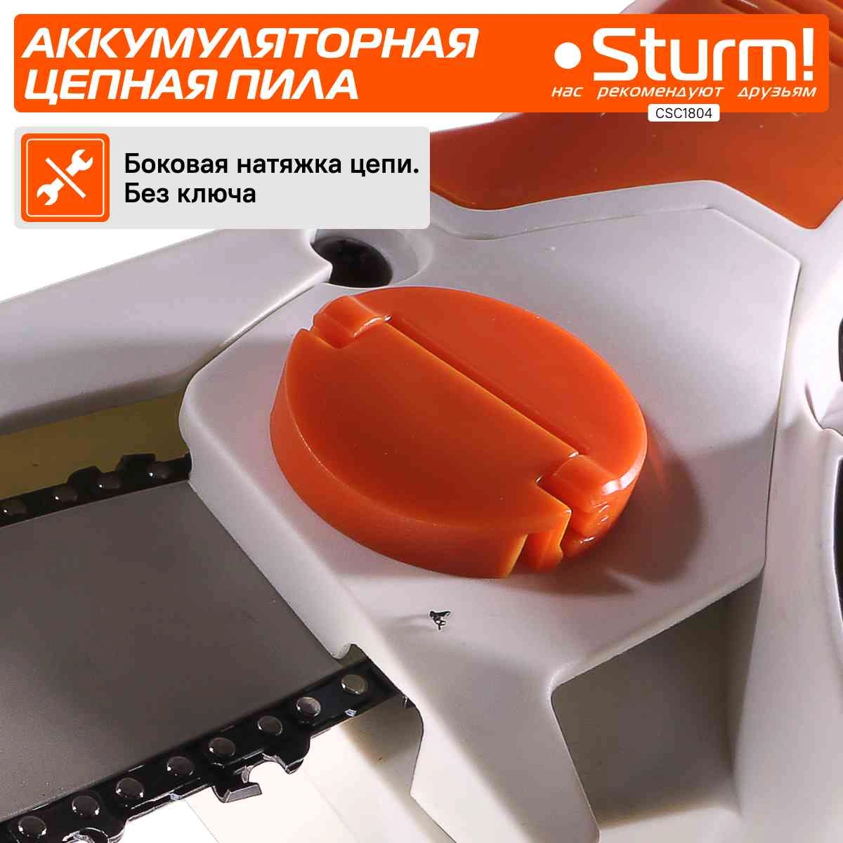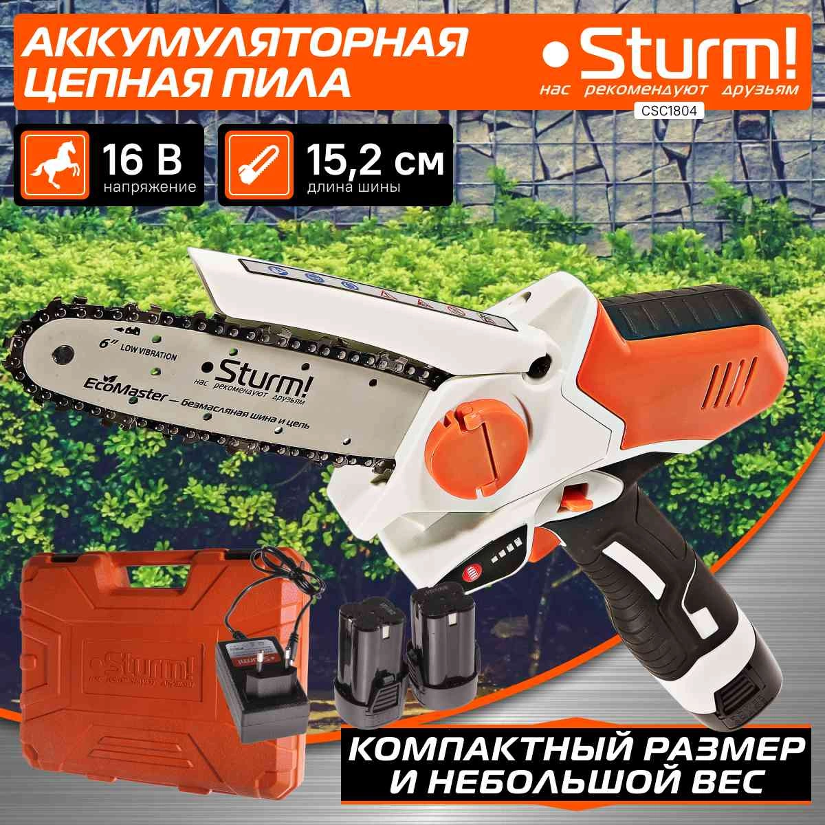 Аккумуляторная цепная пила Sturm! CSC1804 прекрасно справится с обрезкой веток деревьев и простыми столярными работами.